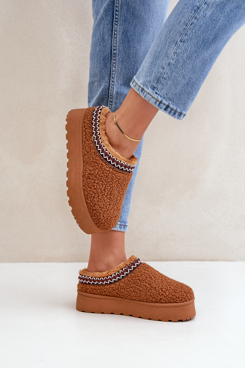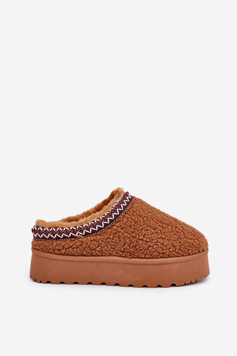 Śniegowce Kapcie Na Platformie Z Futerkiem Typu Baranek Camel Ovirissa
