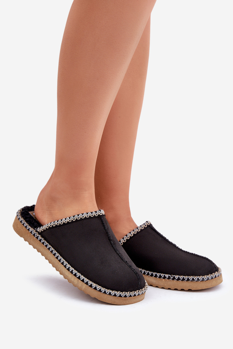 Obuwie Domowe Kapcie Z Haftem Damskie Inblu EY000028 Czarne