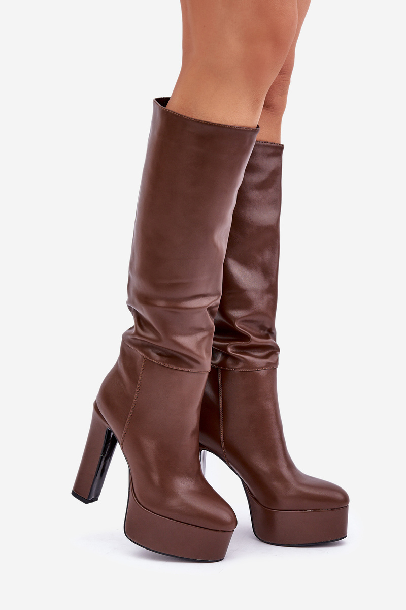 Kozaki Na Słupku I Platformie Z Eko Skóry Brązowe Felilorn