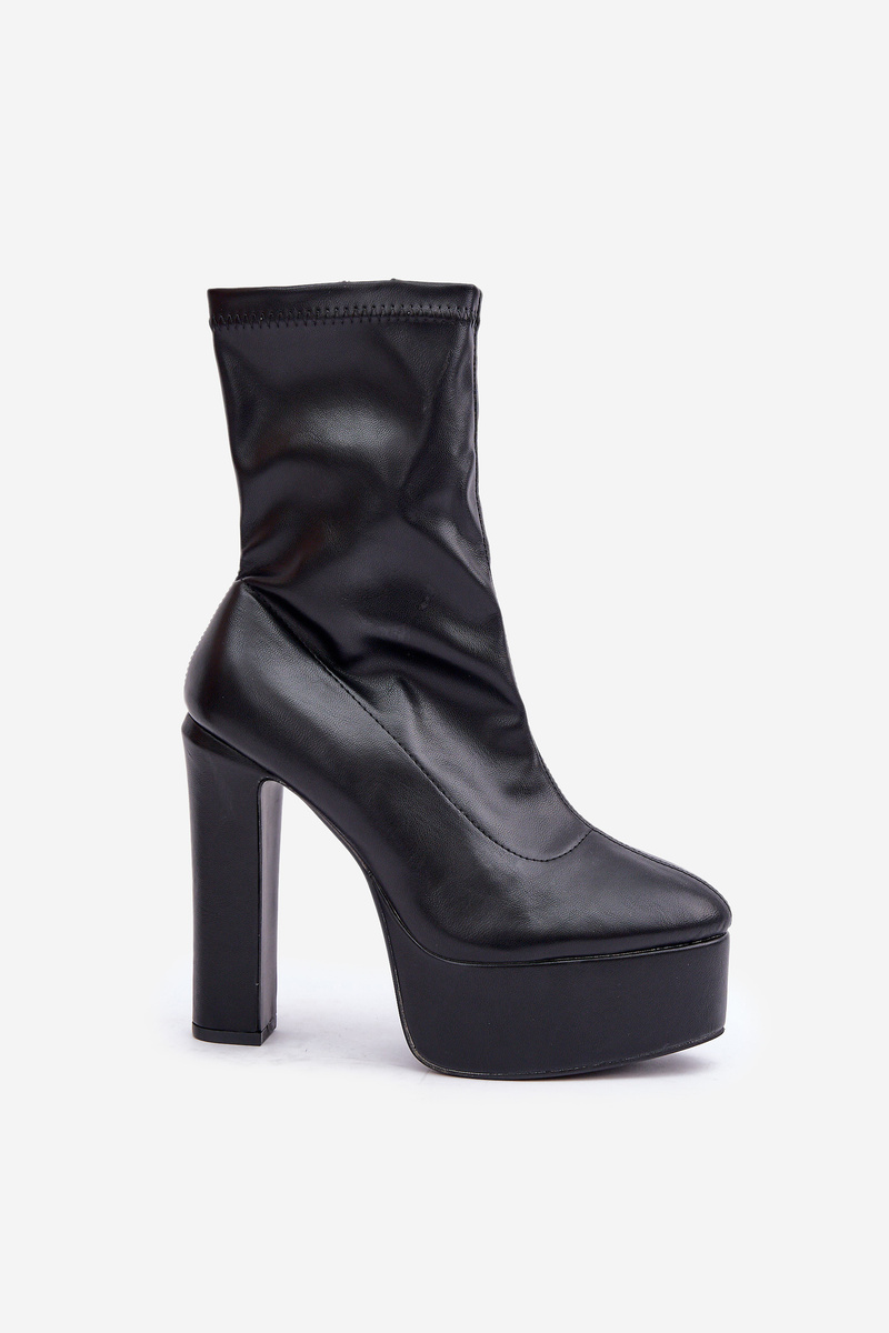 Botki Na Wysokim Obcasie Słupku I Platformie Czarne Tennira