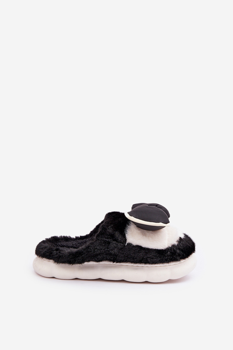 Futrzane Kapcie Z Kokardką Czarne Grilis