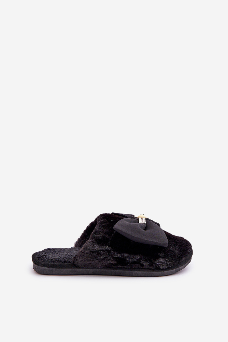 Kapcie Damskie Z Futerkiem I Kokardą Czarne Olfedi