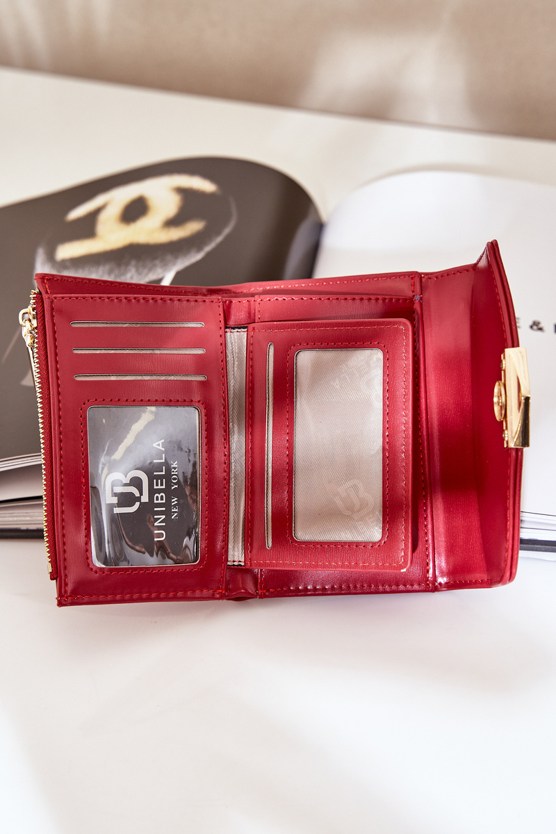 Portfel damski wykonany z lakierowanej eko skóry. Model ten posiada kieszeń na monety zamykaną na suwak. Wewnątrz znajduje się sekcja na banknoty oraz karty. Zapinany jest na magnes. Klasyczny fason, który z pewnością przypadnie do gustu każdej kobiecie!