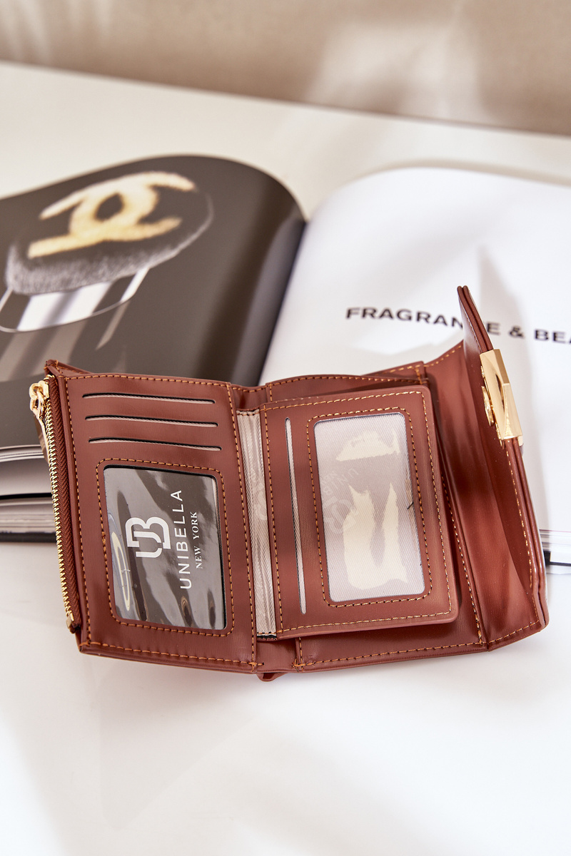 Portfel damski wykonany z lakierowanej eko skóry. Model ten posiada kieszeń na monety zamykaną na suwak. Wewnątrz znajduje się sekcja na banknoty oraz karty. Zapinany jest na magnes. Klasyczny fason, który z pewnością przypadnie do gustu każdej kobiecie!
