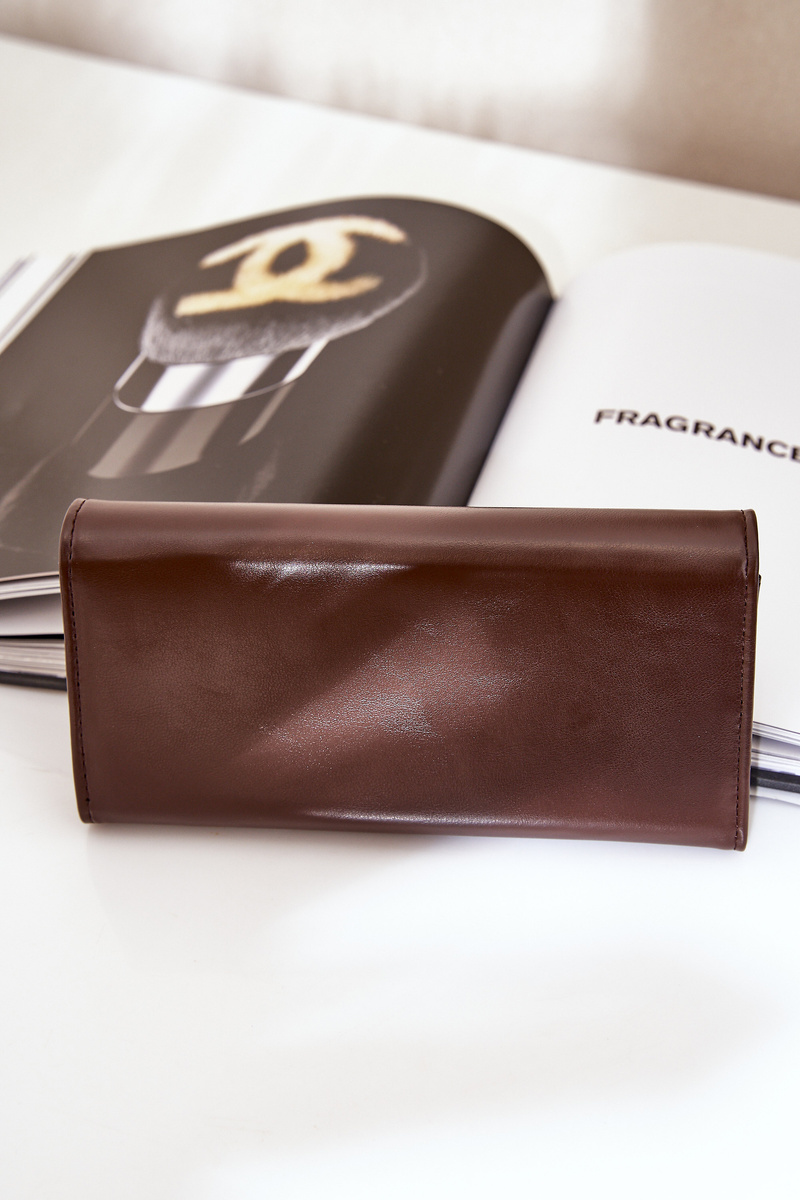 Eko Skórzany Gładki Portfel Damski Czekoladowy Erolia