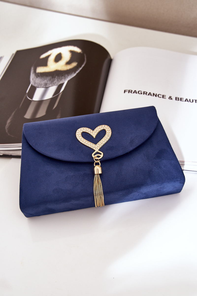 Torebka Kopertówka Z Ozdobnym Sercem Eko Zamszowa Granatowa Evilinas