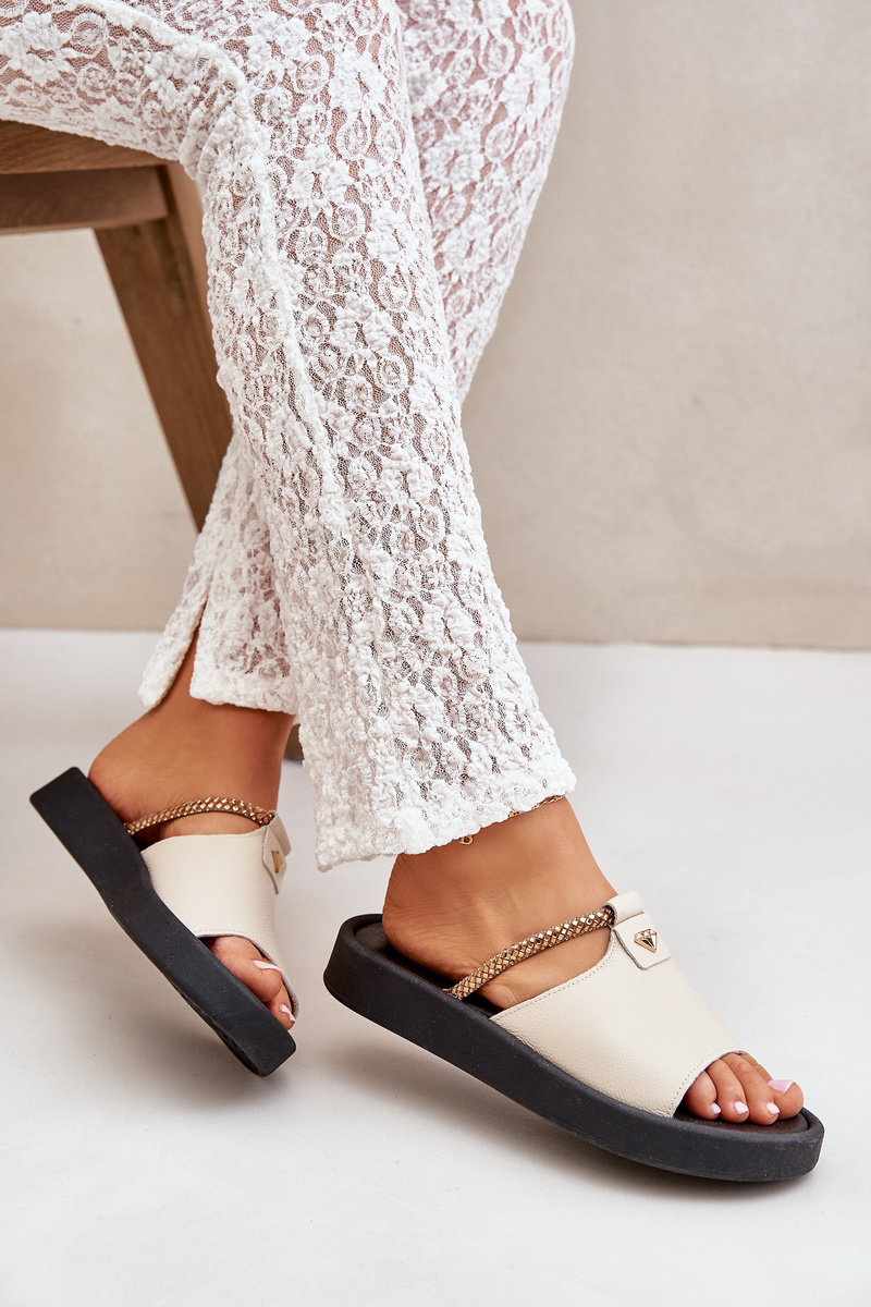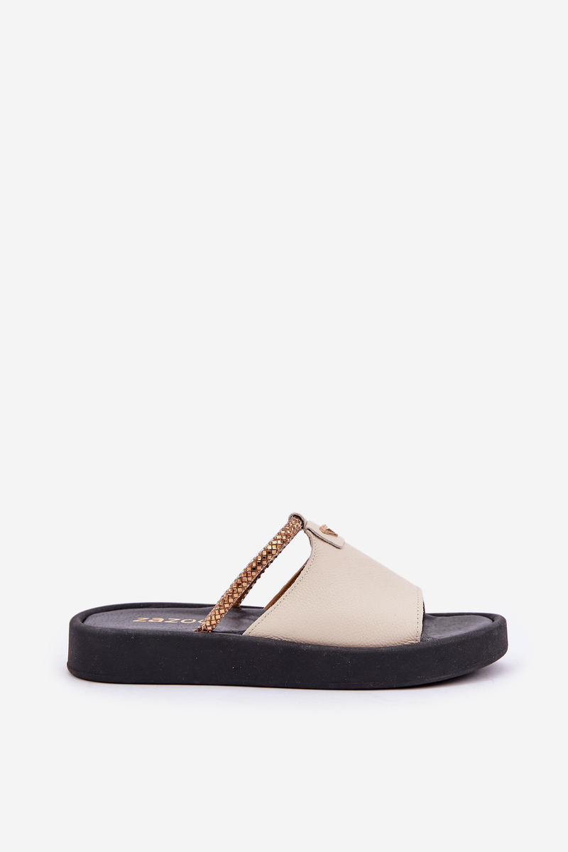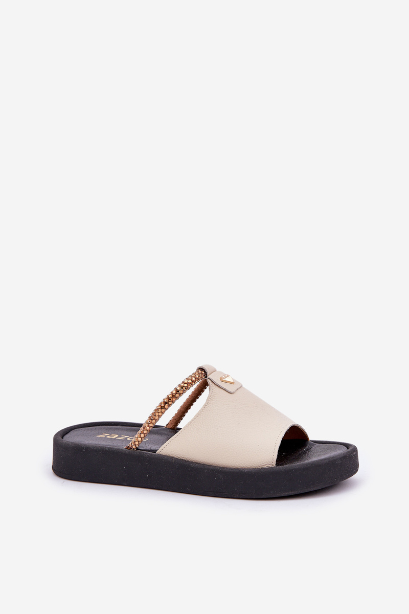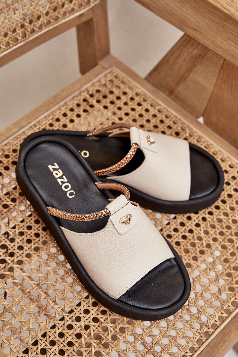 Zazoo 2896 Klapki Damskie Skórzane Beżowe