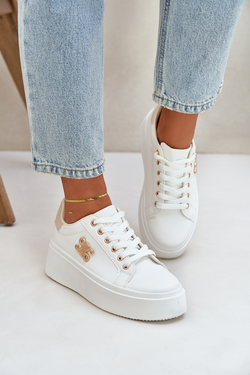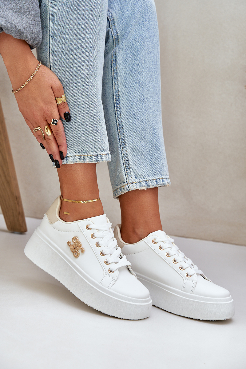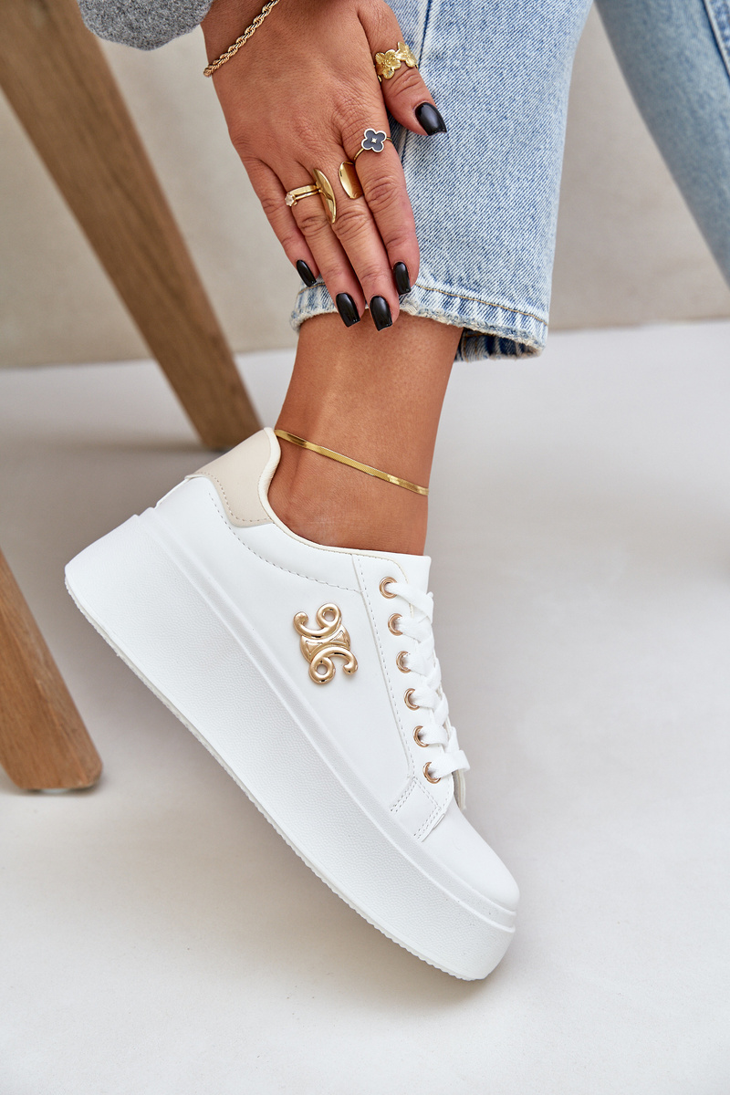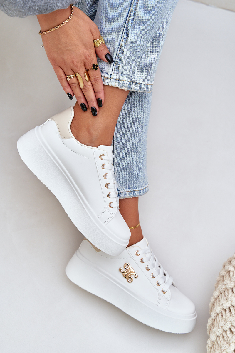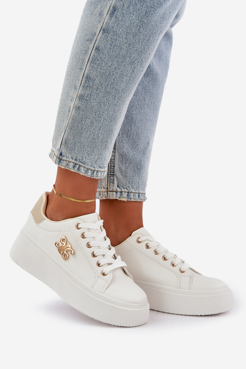 Sneakersy Damskie Na Platformie Biało-Beżowe Temittes