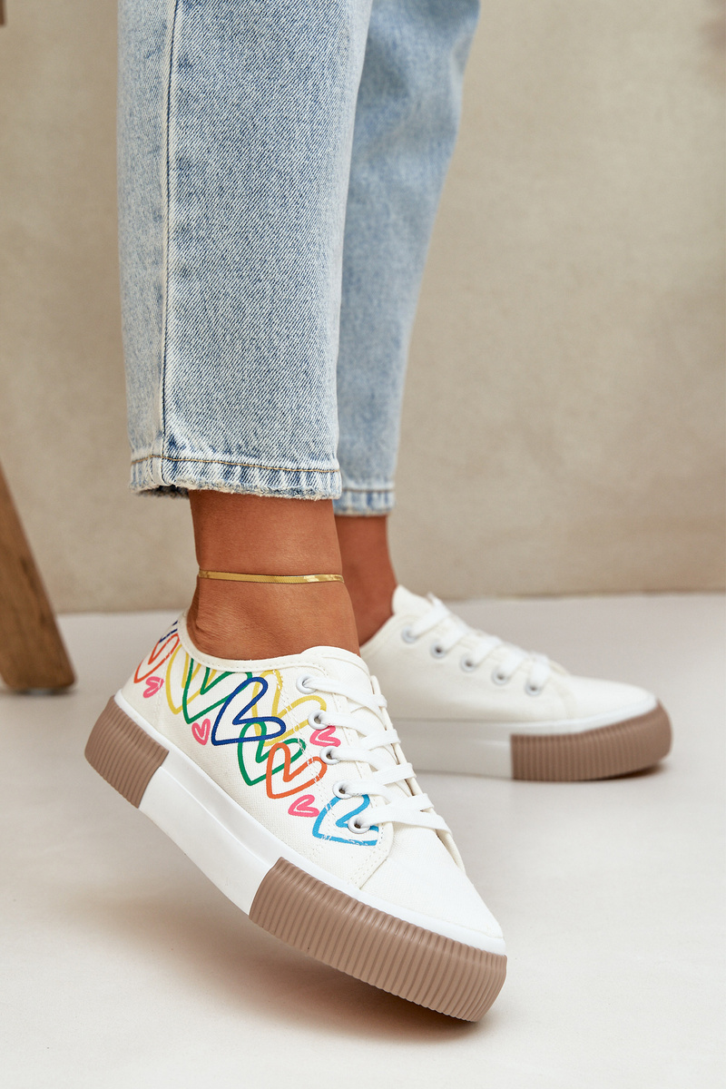 Trampki Tenisówki Damskie W Serca Białe Fonirea
