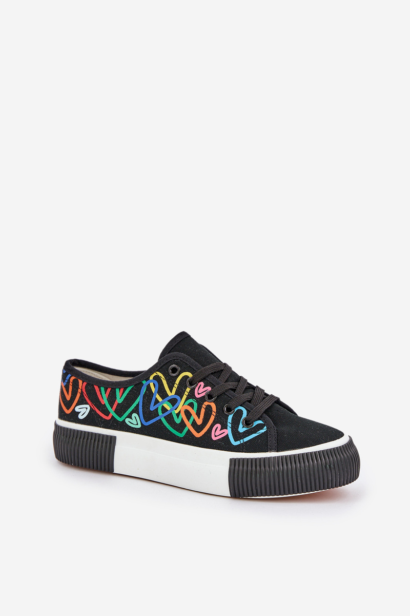 Trampki Tenisówki Damskie W Serca Czarne Fonirea