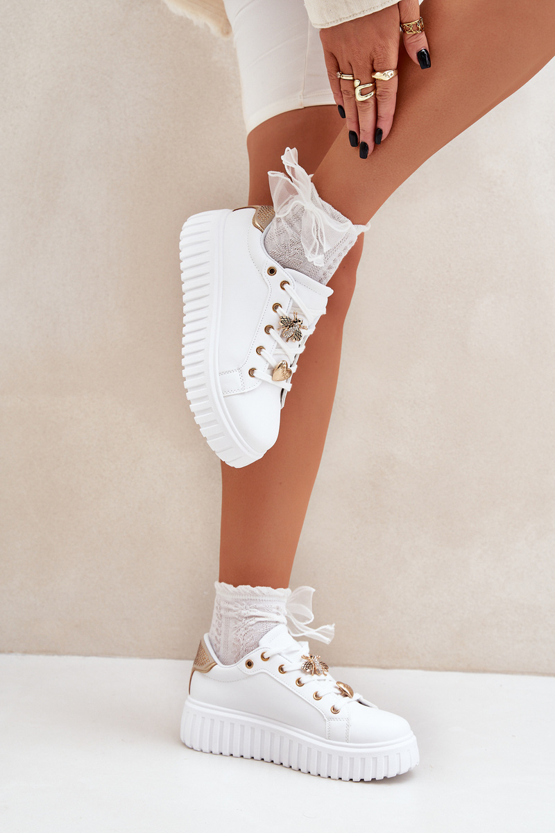 Sneakersy Damskie Z Przypinkami Białe Grelesi