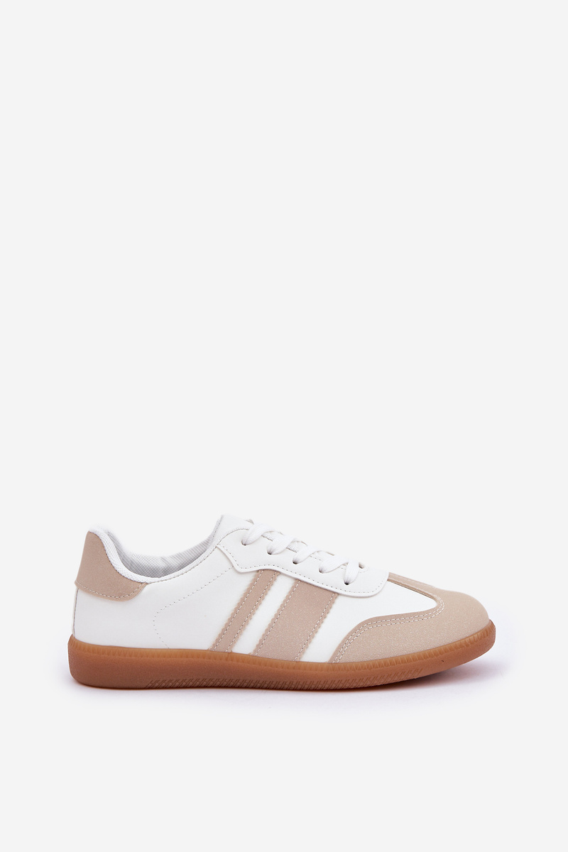Niskie Sneakersy Damskie Z Eko Skóry Beżowo-Białe Nonalorin