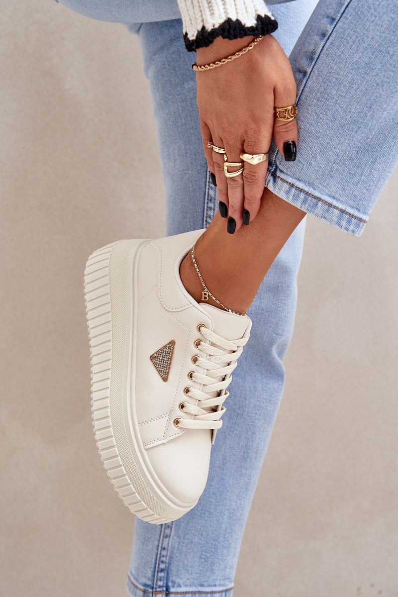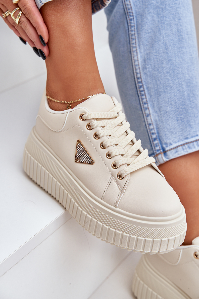 Stylowe Sneakersy Na Masywnej Platformie Jasnobeżowe Vallexia