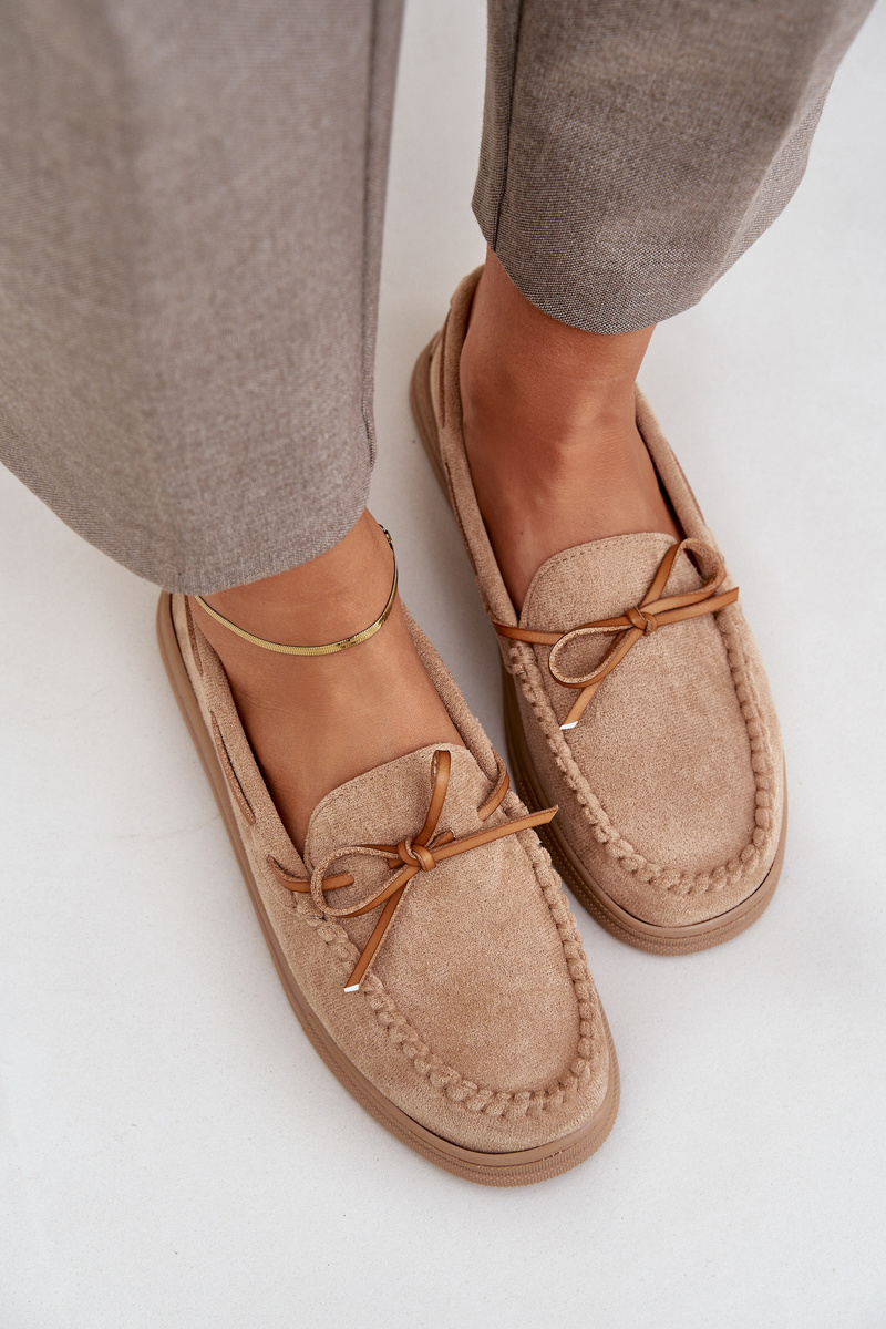 Mokasyny Damskie Na Płaskiej Podeszwie Beżowe Timannie