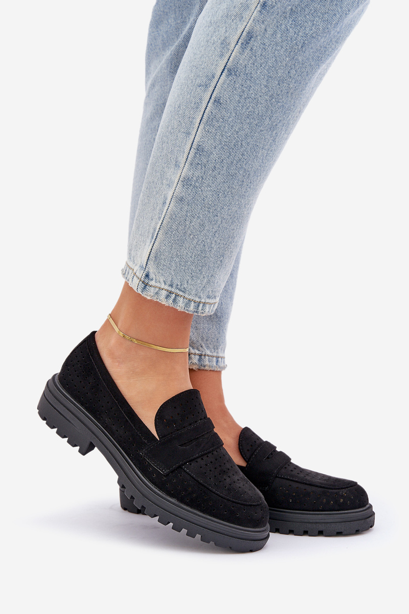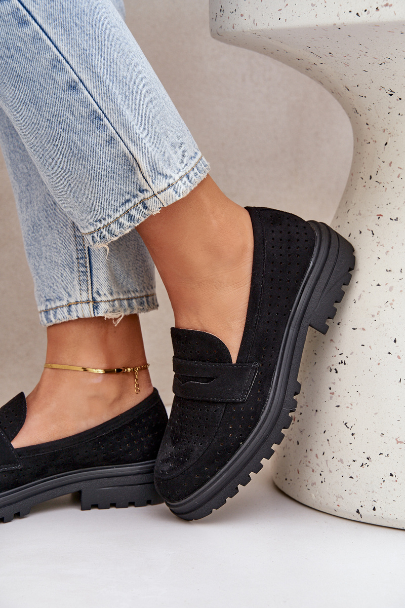 Ażurowe Mokasyny Na Płaskim Obcasie Czarne Inestelle
