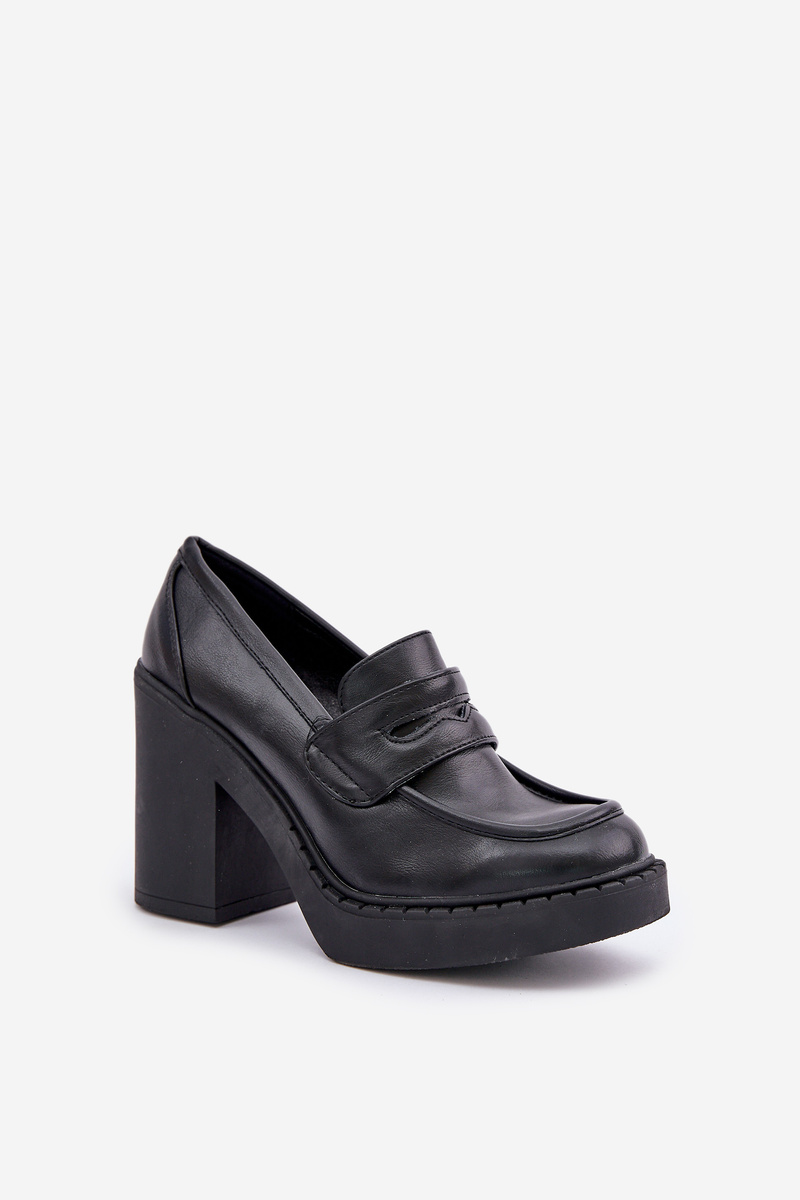 Czółenka Na Masywnym Słupku Z Eko Skóry Czarne Eminza