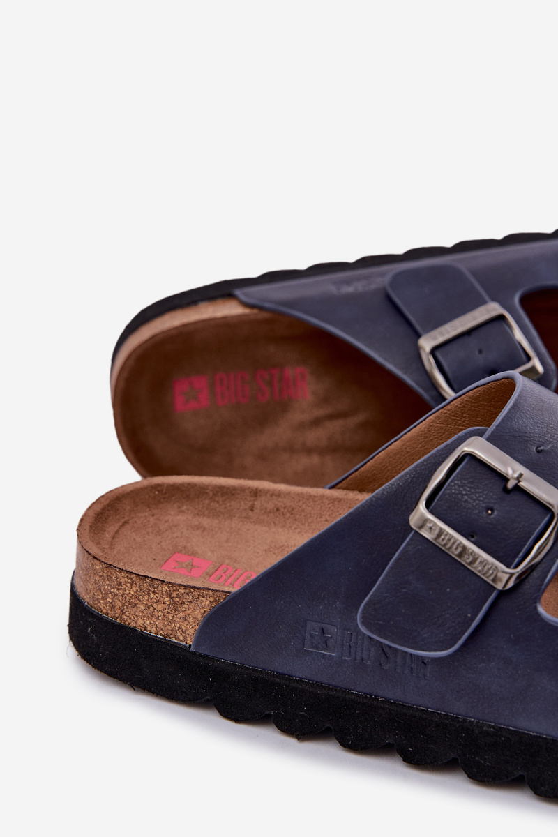 Lekkie Klapki Męskie Z Klamrami Eko Skóra Big Star NN174530 Granatowe