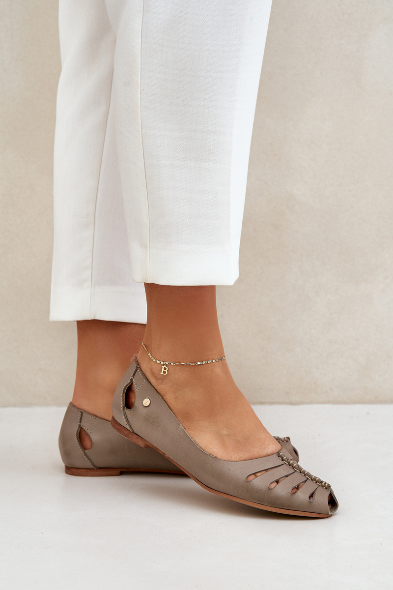 Klasyczne baleriny zostały wykonane z naturalnej skóry. Dodatkowo posiadają wycięcia na przodzie oraz z tyłu cholewki. O komfort zadba skórzana, miękka wkładka. Płaski obcas zapewni stabilność na każdym kroku. Świetnie nadają się zarówno w eleganckiej, jak i casualowej stylizacji. Baleriny posiadają także usztywniany zapiętek. Przy wyborze rozmiaru prosimy sugerować się tabelą rozmiarów.