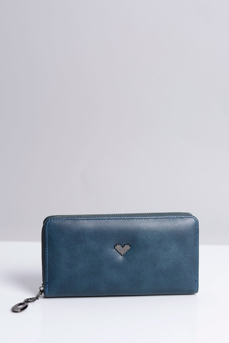 Duży Damski Granatowy Portfel z Serduszkiem