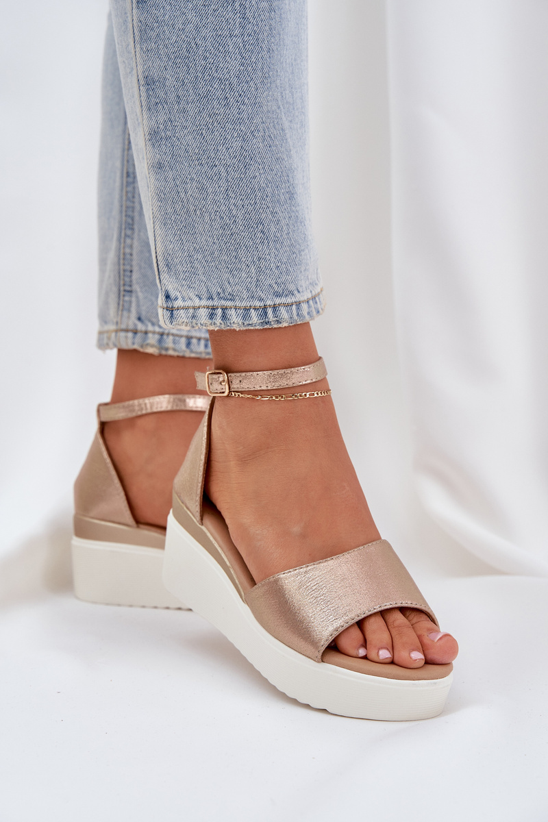 Lekkie Sandały Na Platformie I Delikatnym Koturnie Złote Gillifia