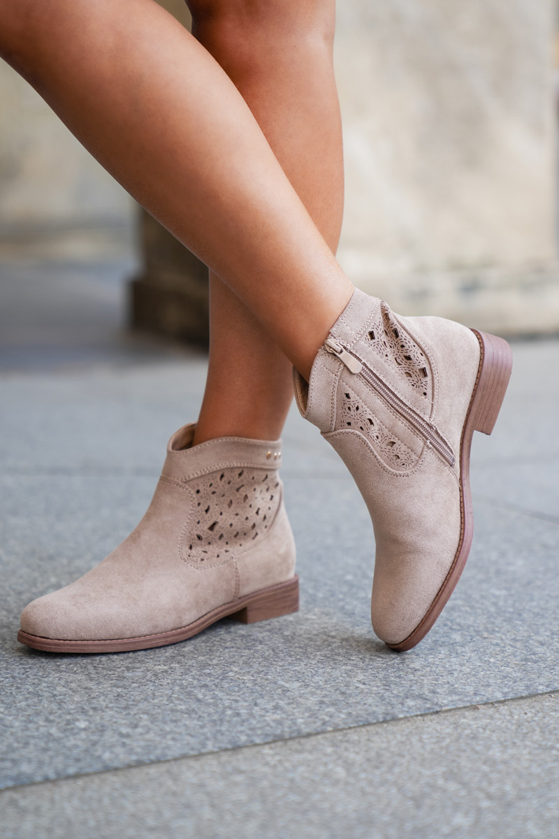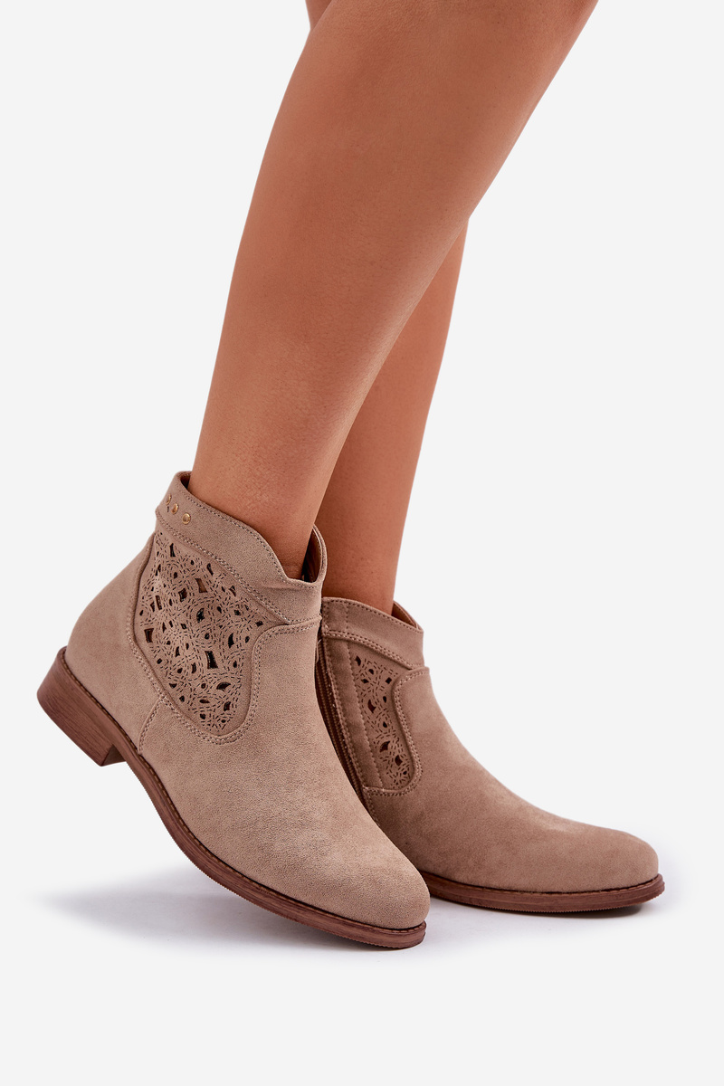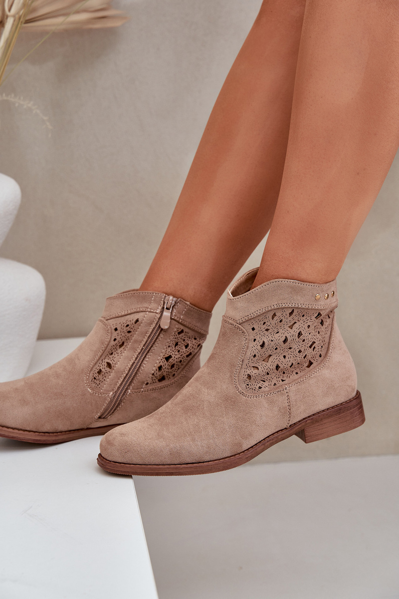 Ażurowe Botki Damskie Na Płaskim Obcasie S.Barski HY51-113 Beżowe