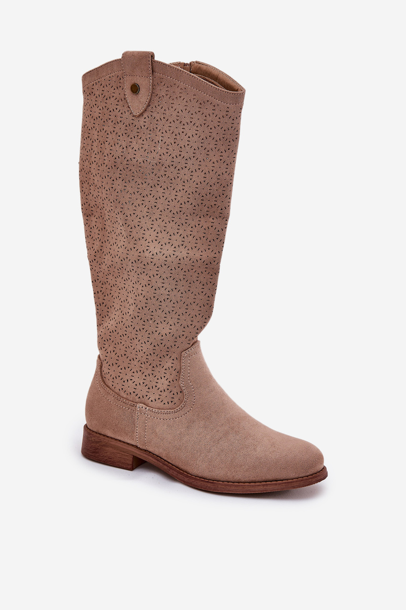 Kozaki Na Płaskim Obcasie Z Ażurowym Wzorem S.Barski HY51-062 Beżowe