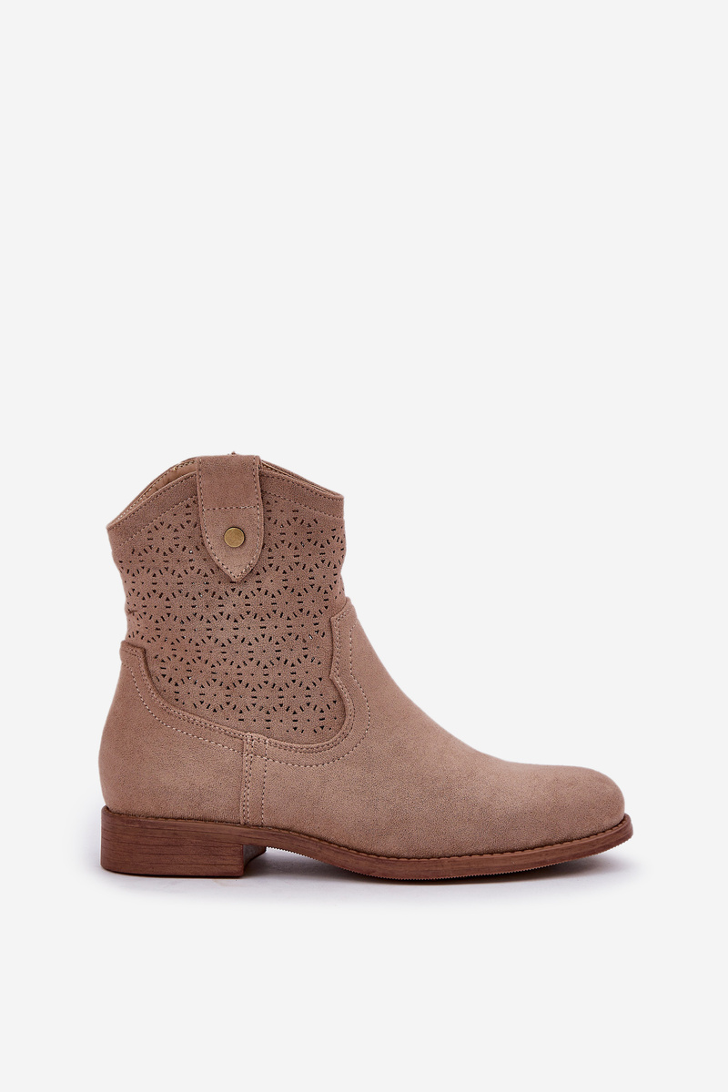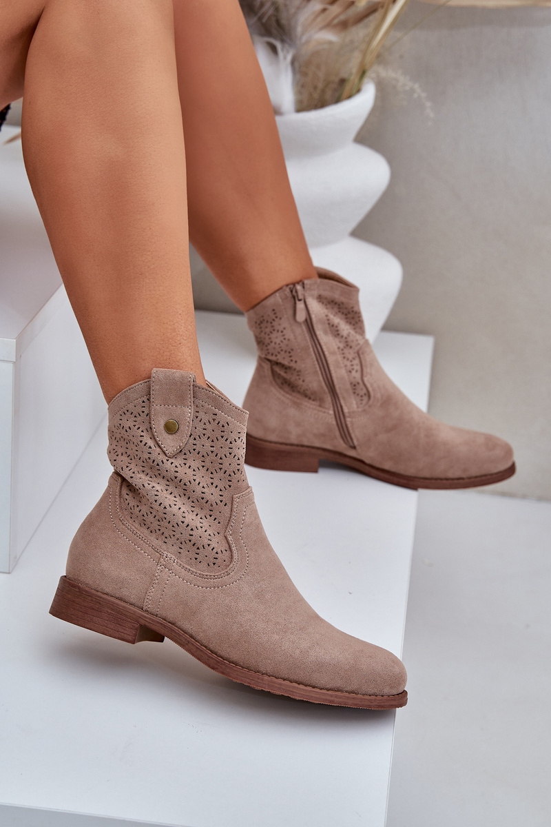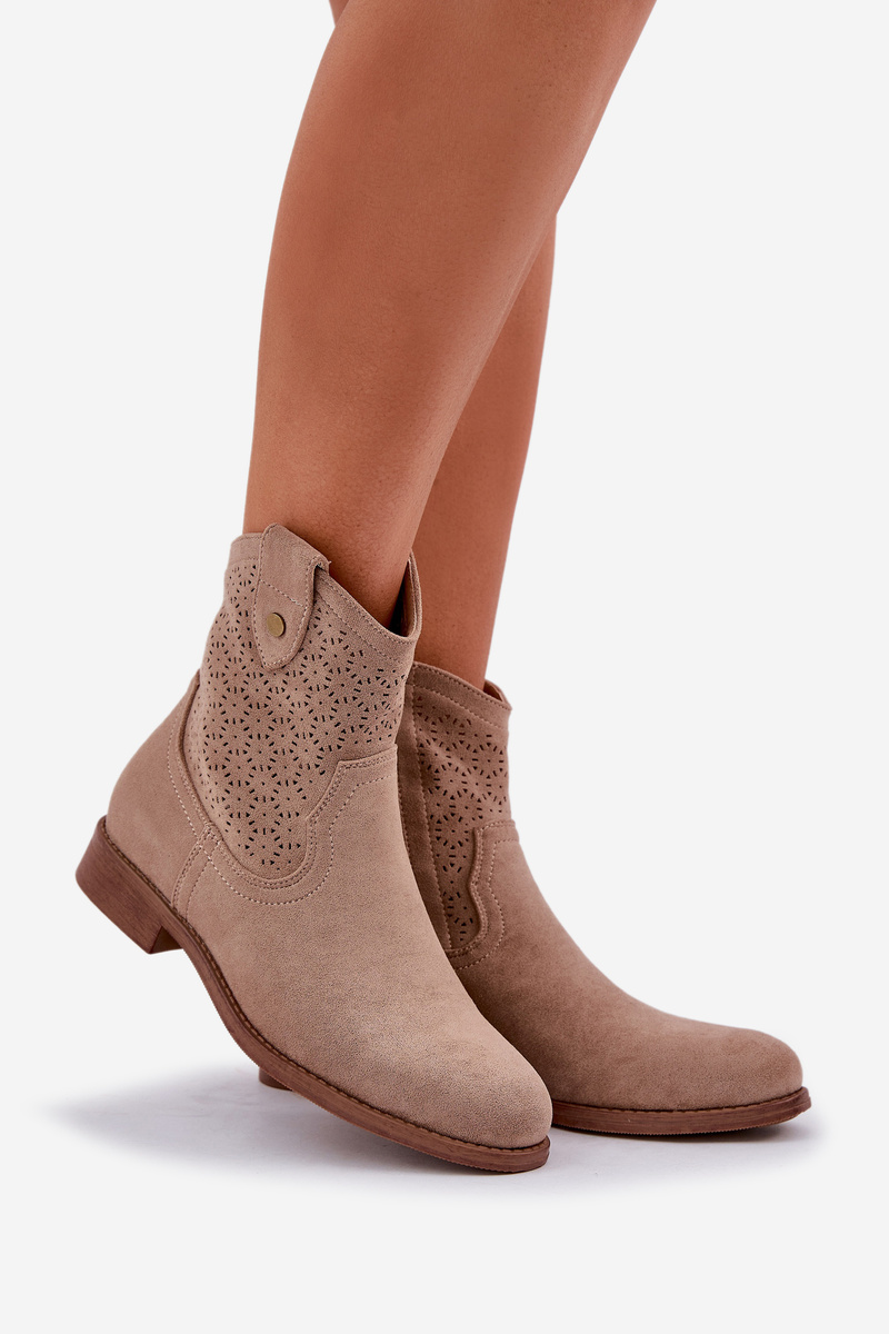 Ażurowe Botki Na Płaskim Obcasie S.Barski HY51-063 Beżowe