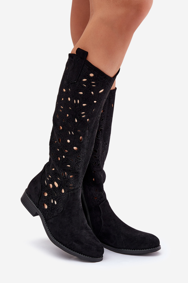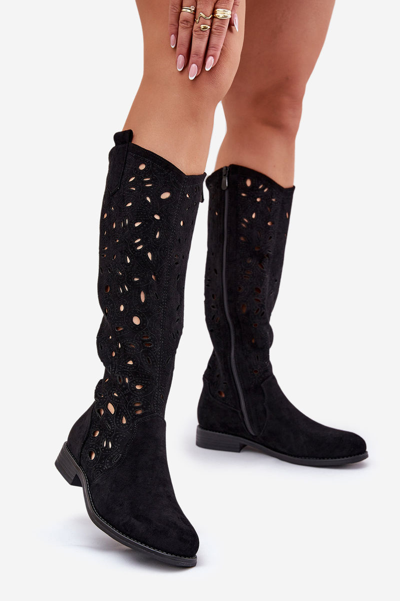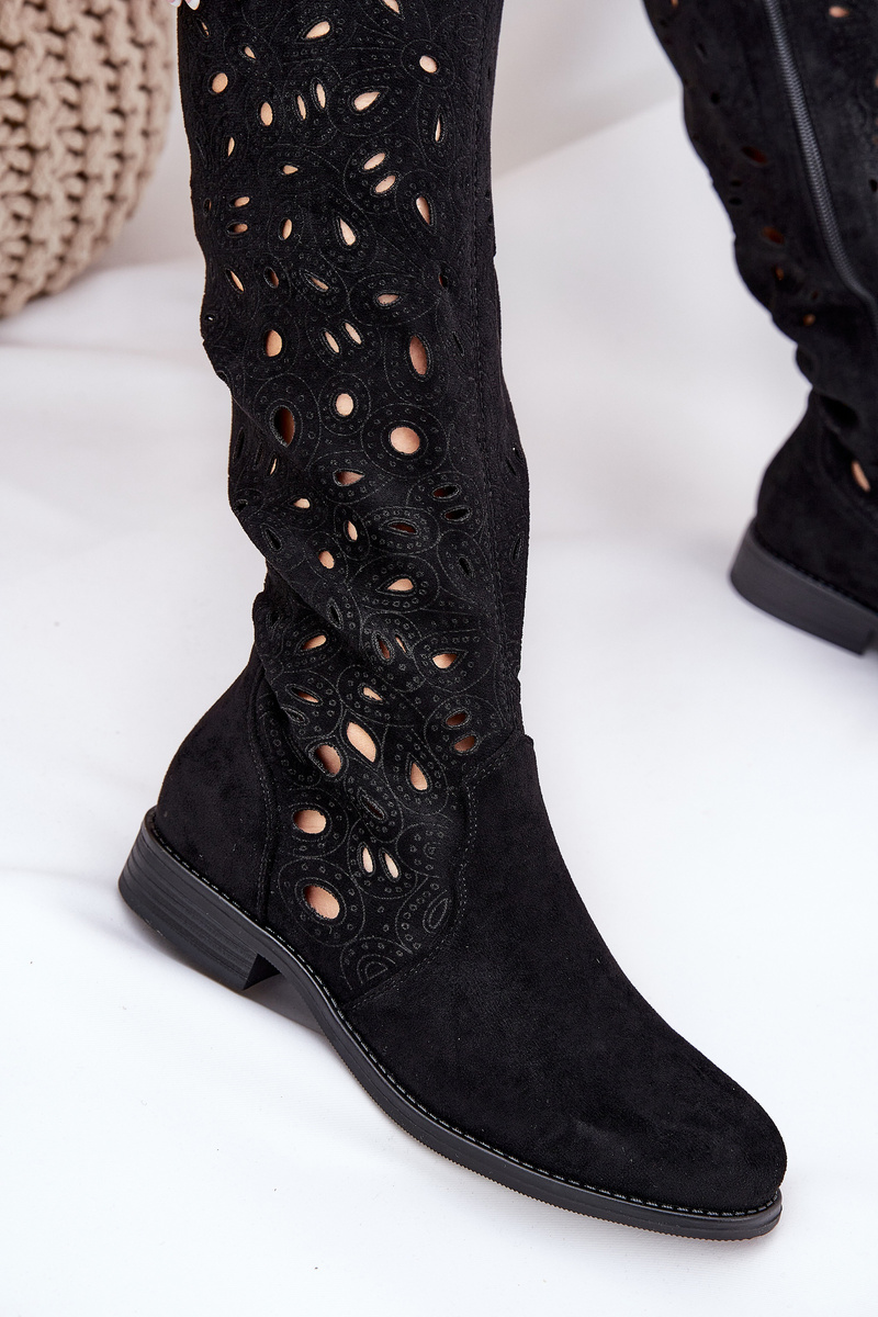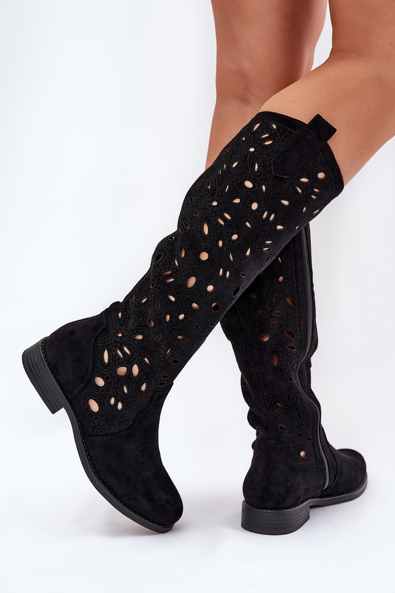 Ażurowe Kozaki Na Płaskim Obcasie HY51-176 Czarne