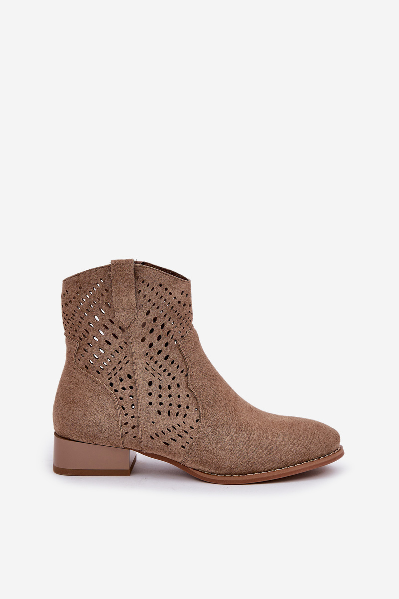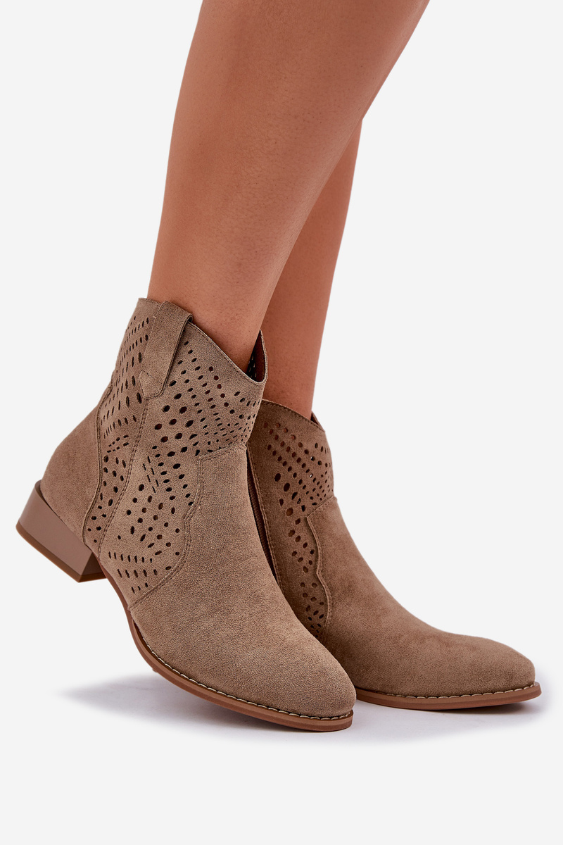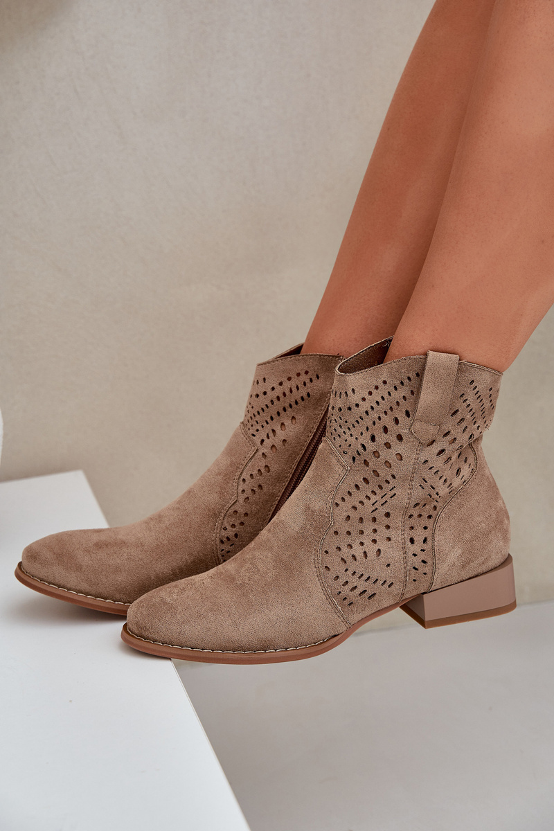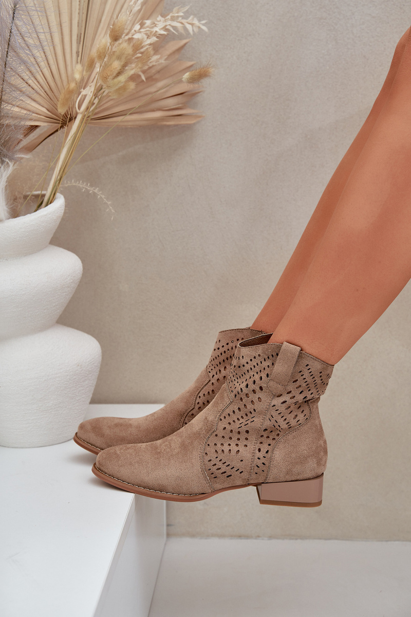 Ażurowe Damskie Botki Na Niskim Obcasie Beżowe Neliawen