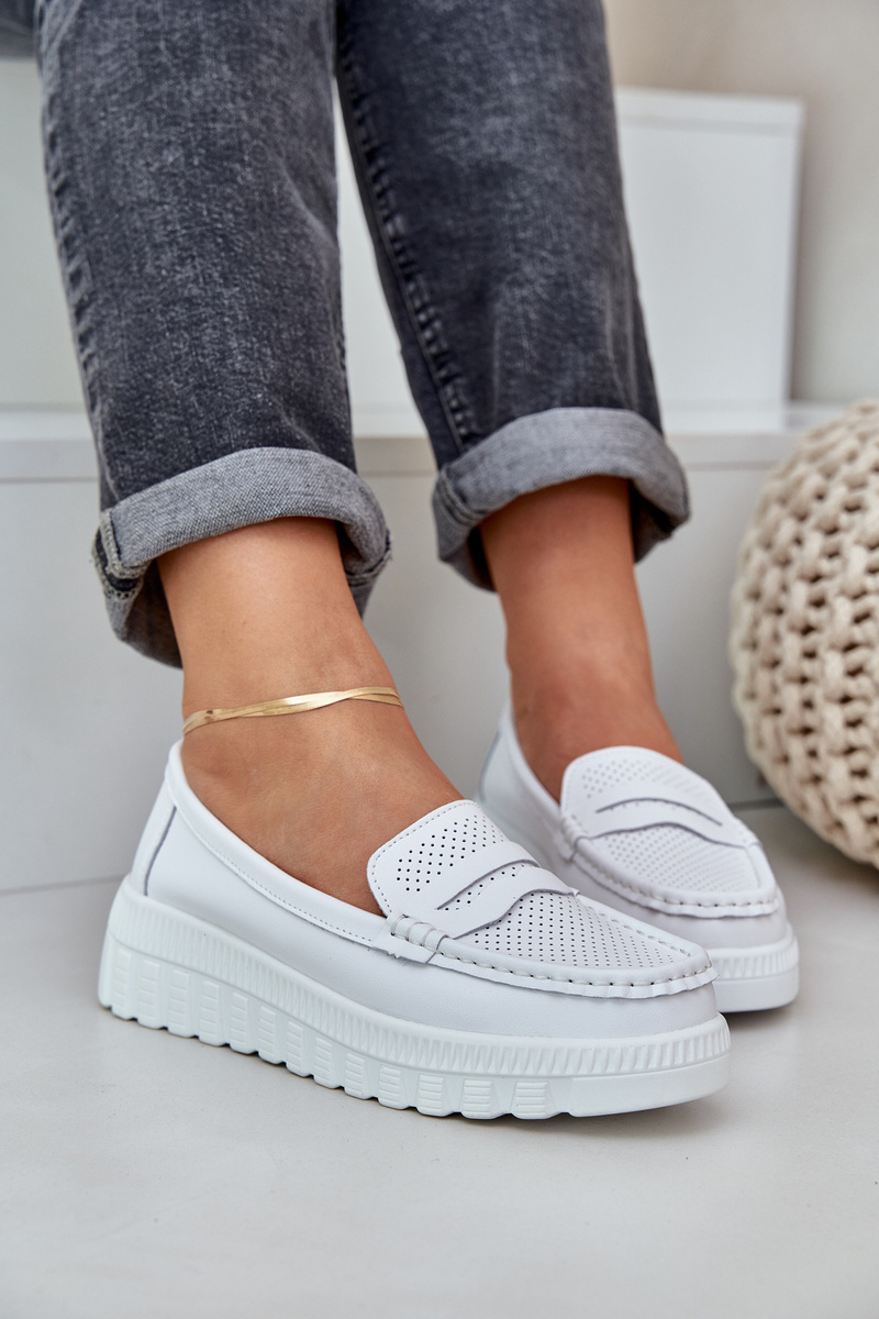 Skórzane Mokasyny Damskie Na Platformie I Koturnie Białe Elanindel