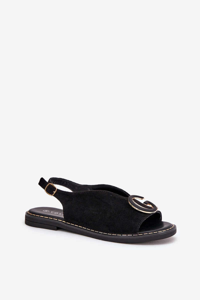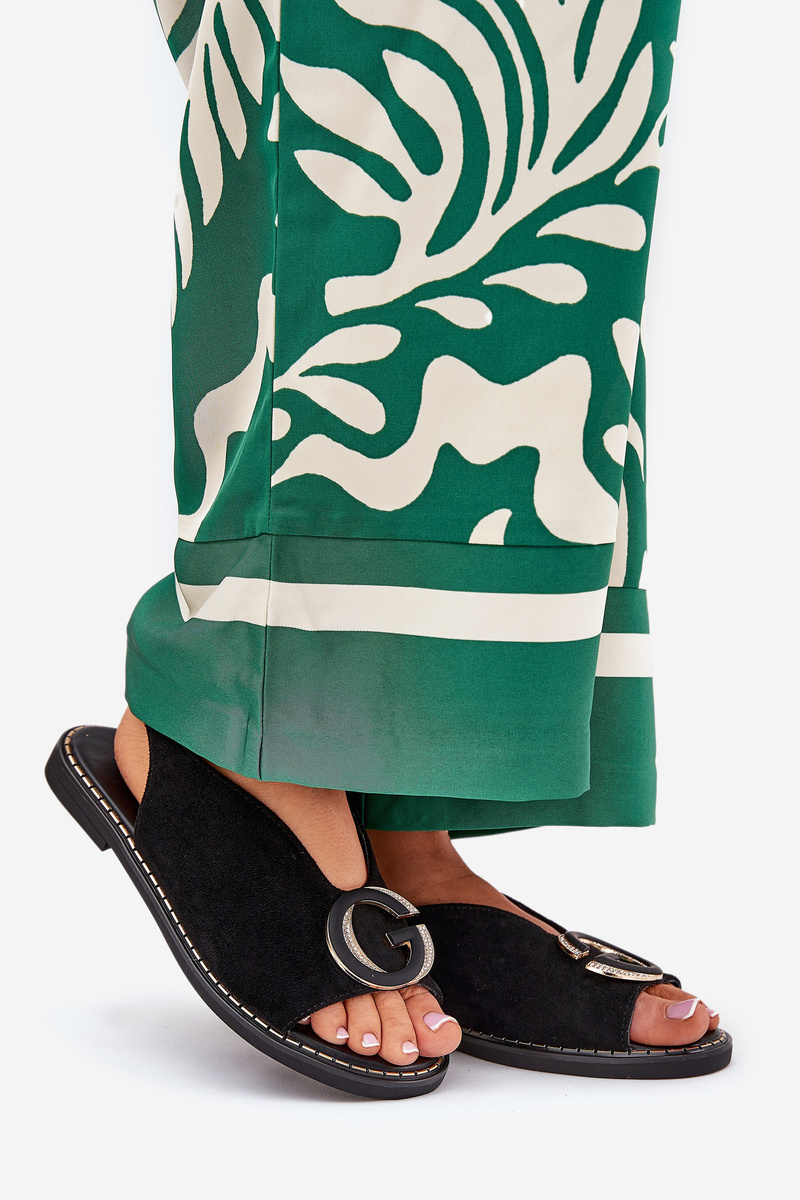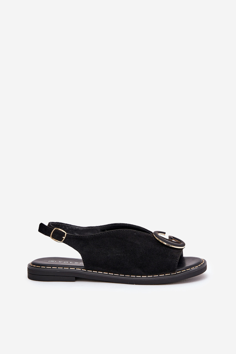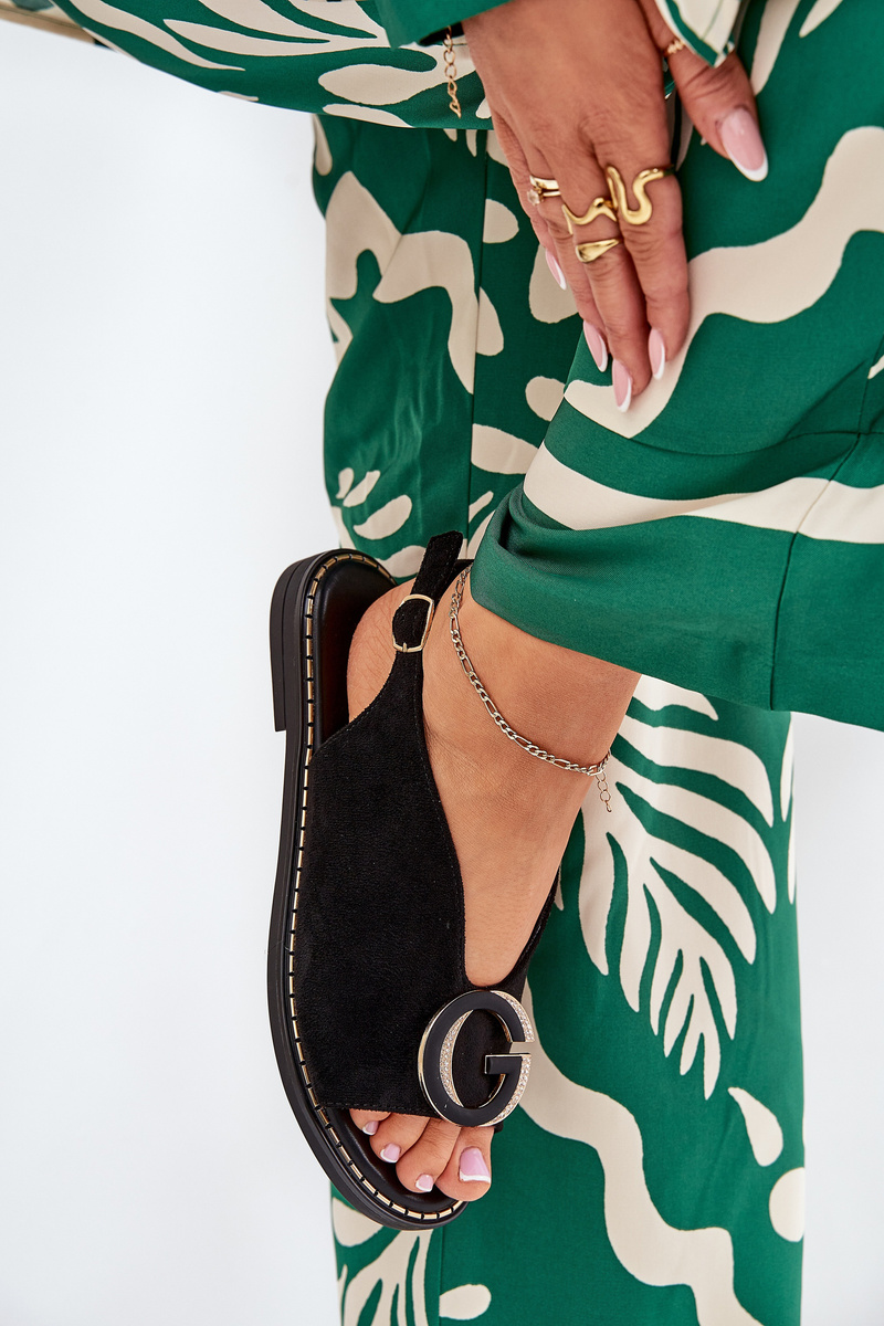 Płaskie Sandały Z Ozdobą Czarne Haliones