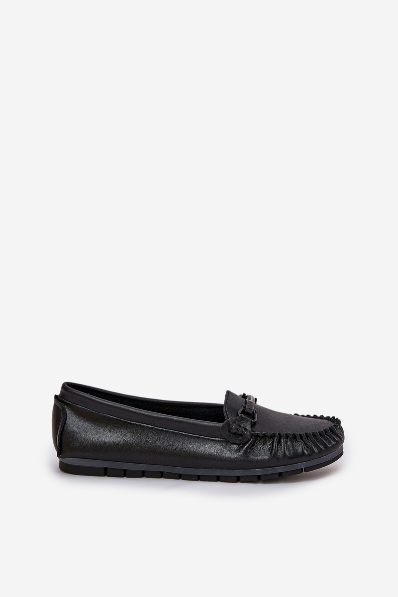 Płaskie Skórzane Mokasyny Z Ozdobą S.Barski LR51-547 Czarne