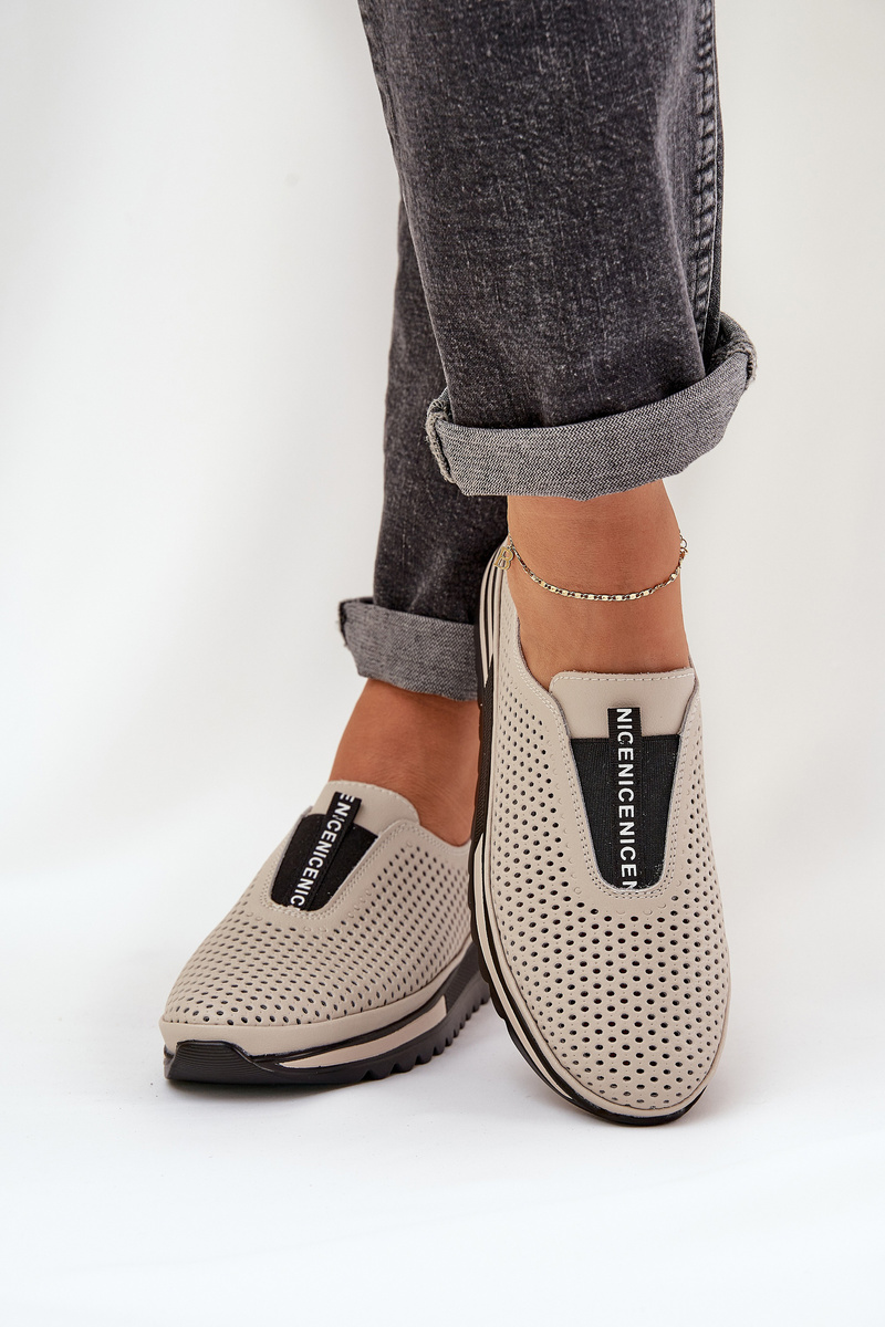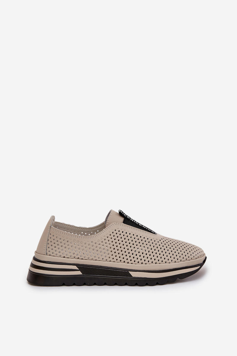 Wsuwane Półbuty Damskie Z Naturalnej Skóry S.Barski LR51-672 Beżowe