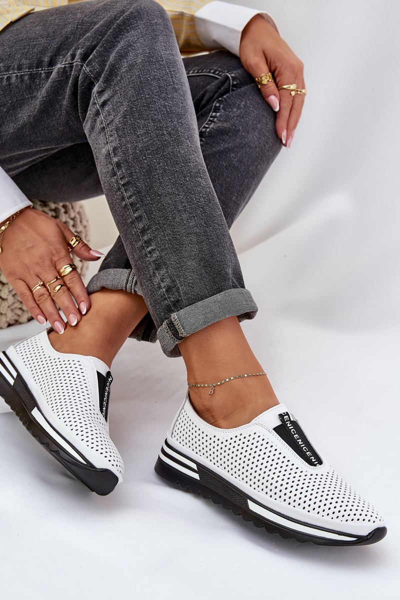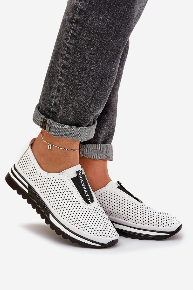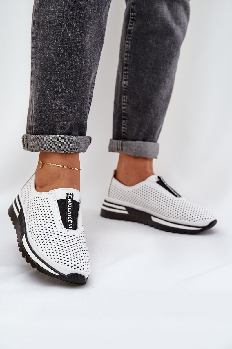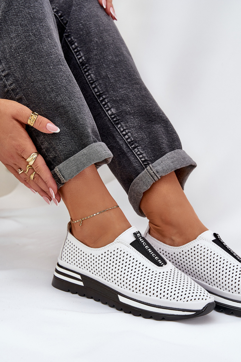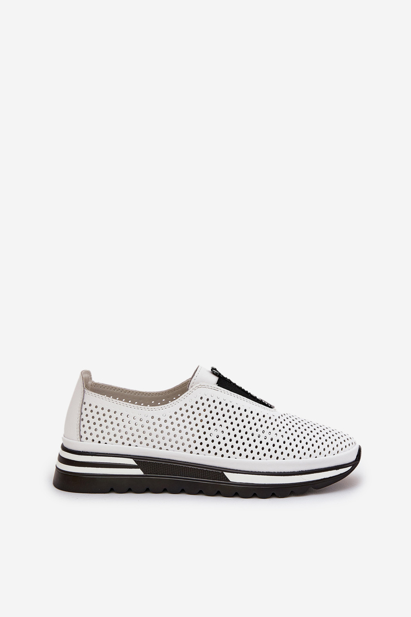 Wsuwane Półbuty Damskie Z Naturalnej Skóry S.Barski LR51-672 Białe