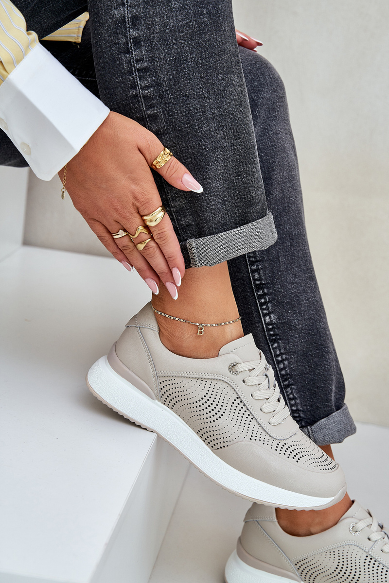 Skórzane Buty Sportowe Sneakersy Damskie S.Barski LR51-551 Beżowe