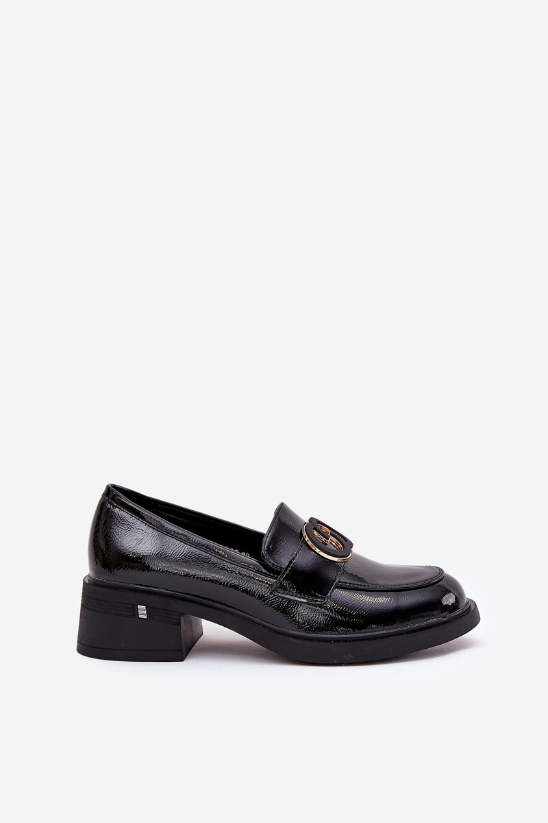 Lakierowane Skórzane Mokasyny Na Obcasie Vinceza 18102 Czarne