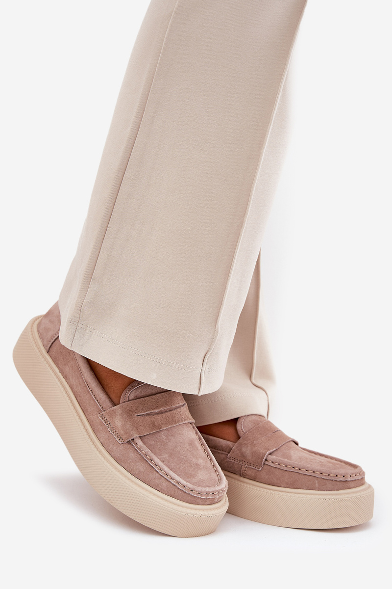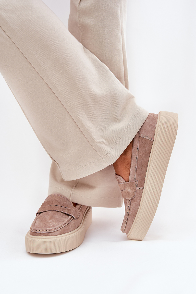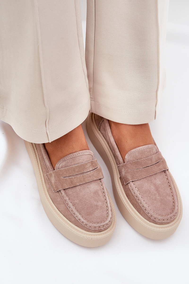 Mokasyny Damskie Zamszowe Na Platformie Vinceza 79535 Beżowe