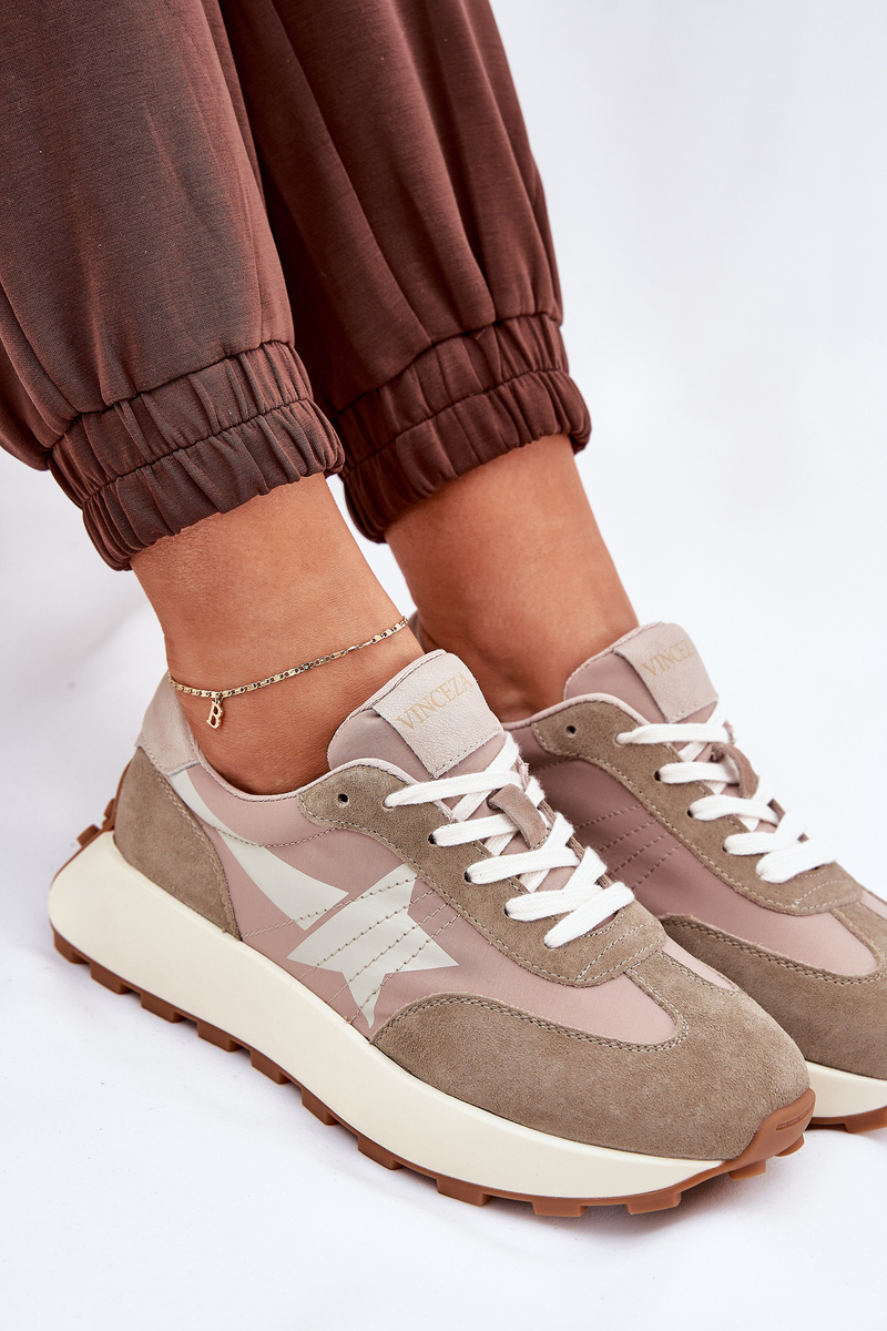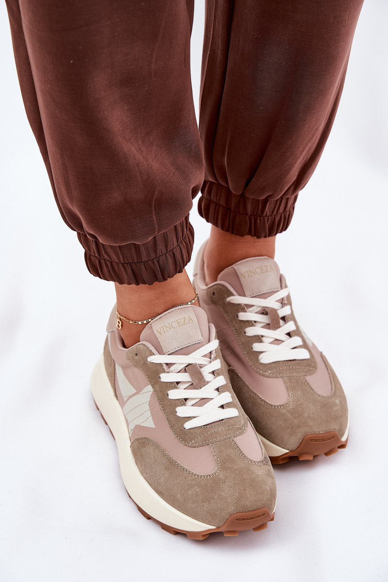 Zamszowe Buty Sportowe Damskie Na Platformie Vinceza 66720 Beżowe