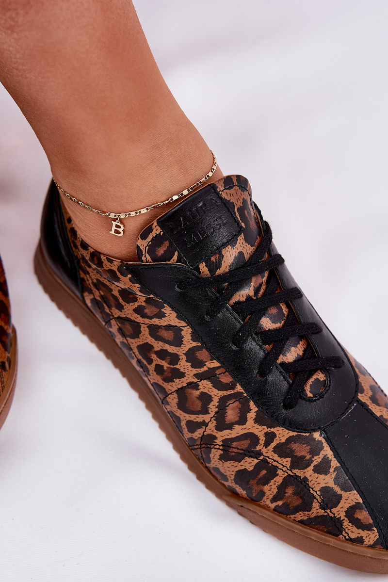 Skórzane Buty Sportowe Damskie W Panterkę Laura Messi 2935 Brązowe