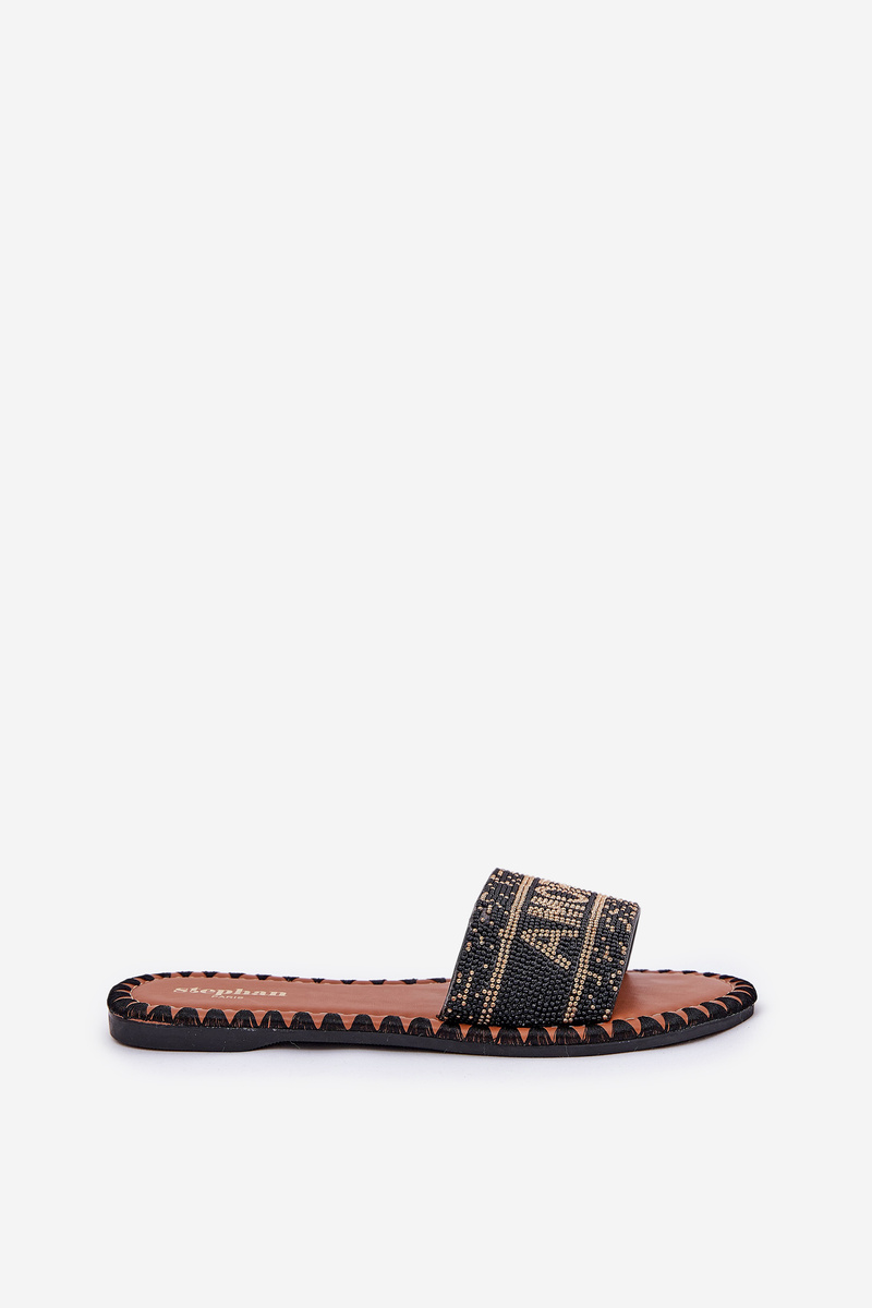 Klapki Damskie Na Płaskim Obcasie Ze Zdobieniem Czarne Dorfedi