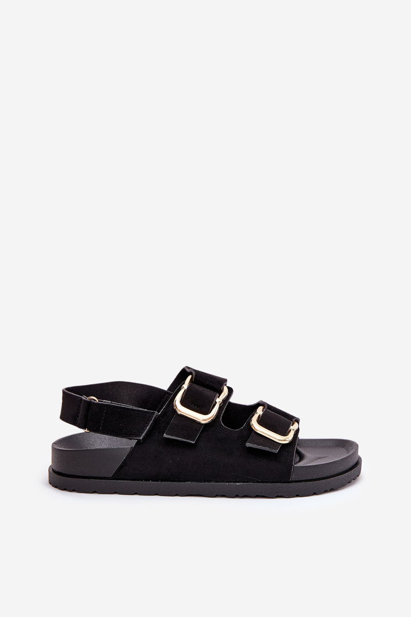 Sandały wykonane z eko zamszu łączą w sobie wygodę z nowoczesnym stylem. Dzięki platformie zapewniają komfort oraz lekkość podczas chodzenia. Zapięcie na rzep umożliwia doskonałe dopasowanie do stopy. Model ten charakteryzuje się złotymi klamrami, które dodają mu wyjątkowego uroku. To idealny wybór na letnie dni! Przy wyborze rozmiaru prosimy sugerować się tabelą rozmiarów.