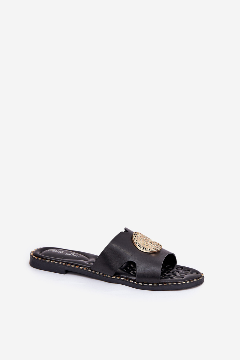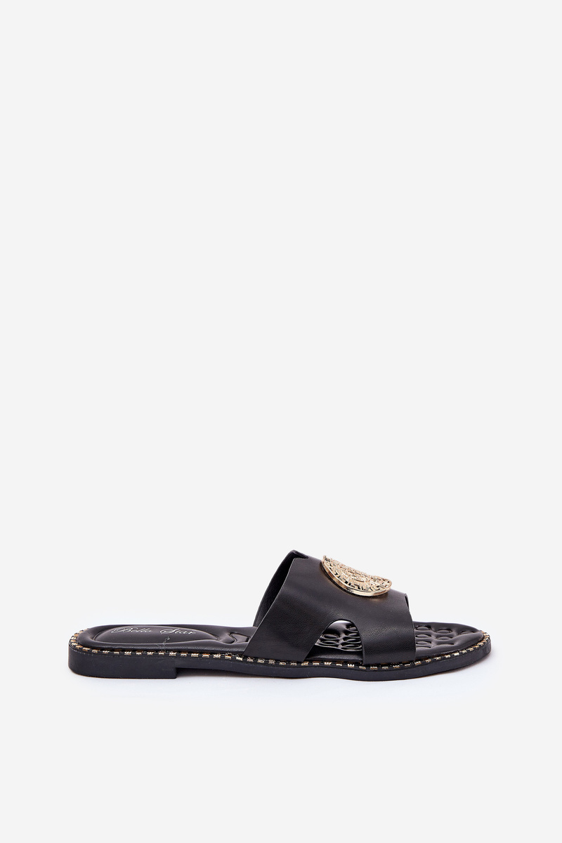 Płaskie Klapki Damskie Z Ozdobnym Detalem Czarne Oferry