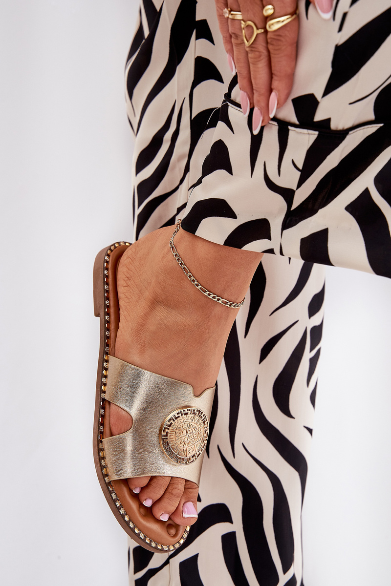 Płaskie Klapki Damskie Z Ozdobnym Detalem Złote Oferry