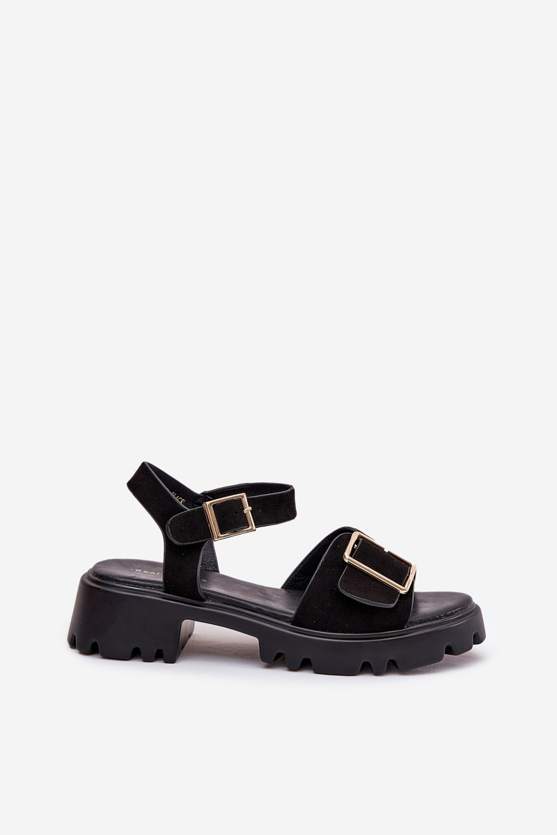 Eko Zamszowe Sandały Damskie Z Klamrą Czarne Gofielle