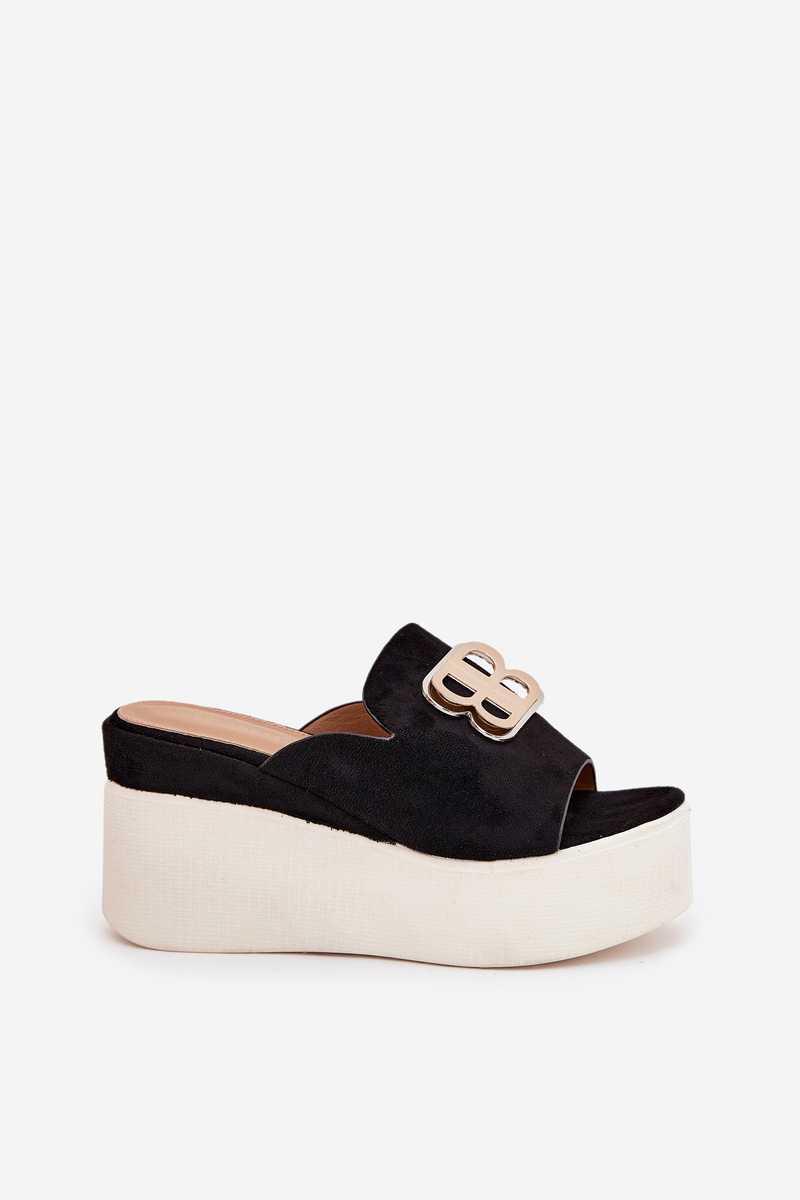 Klapki Na Platformie I Koturnie Z Ozdobą Czarne Tanonea