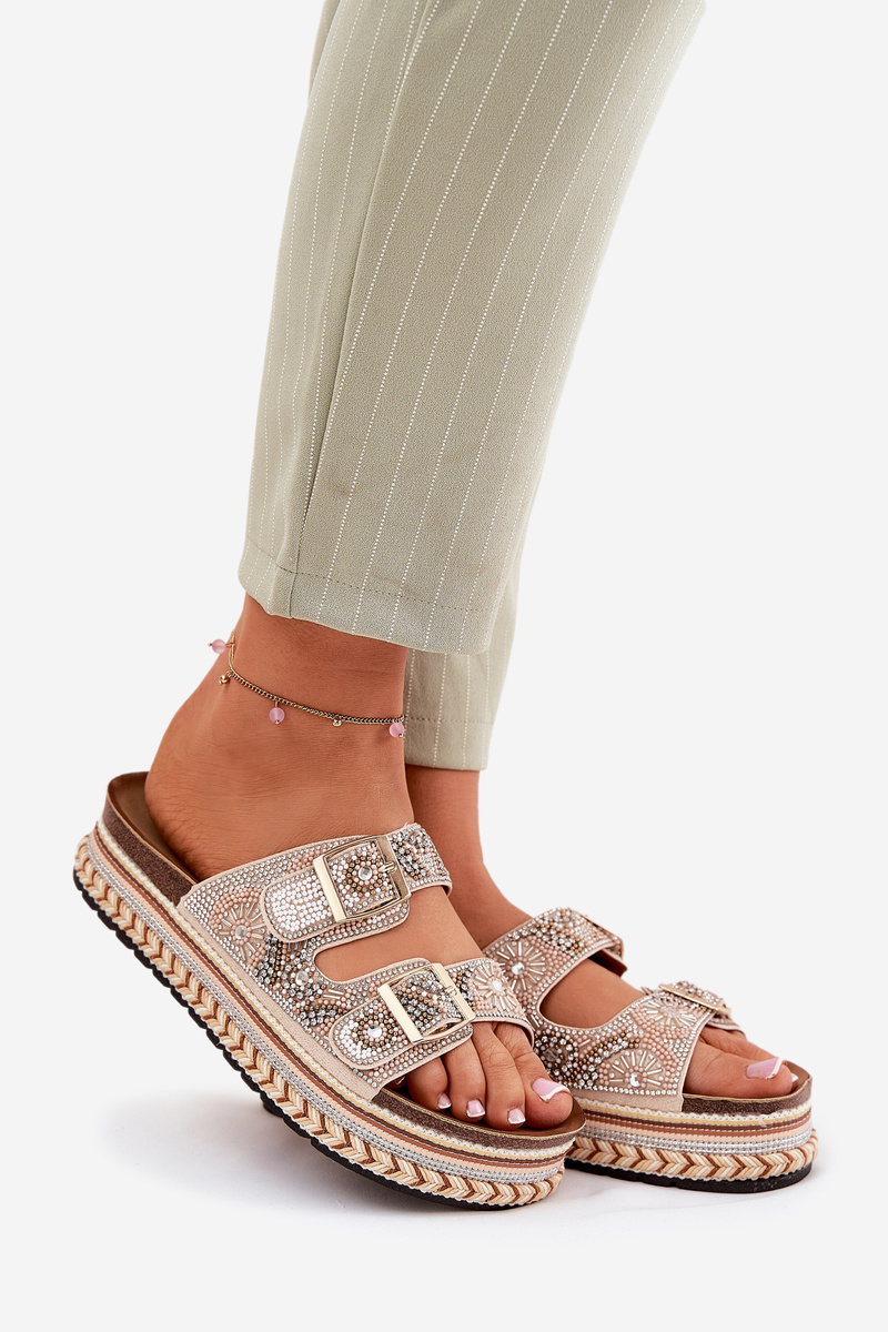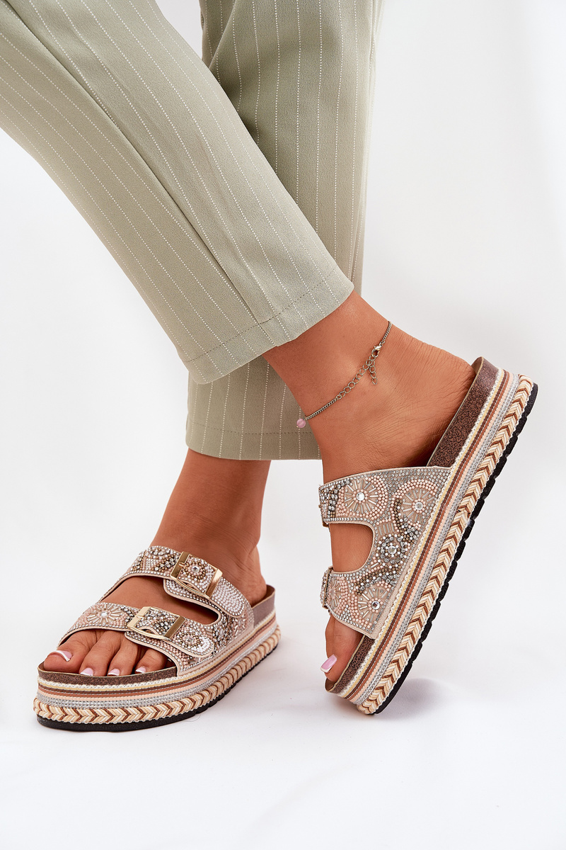 Klapki Ze Zdobieniem I Klamrami Na Platformie Złote Mellene