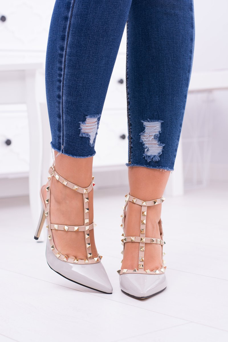 Szpilki damskie Vices Lakierowane Szare Z Ćwiekami Dżety Valenti