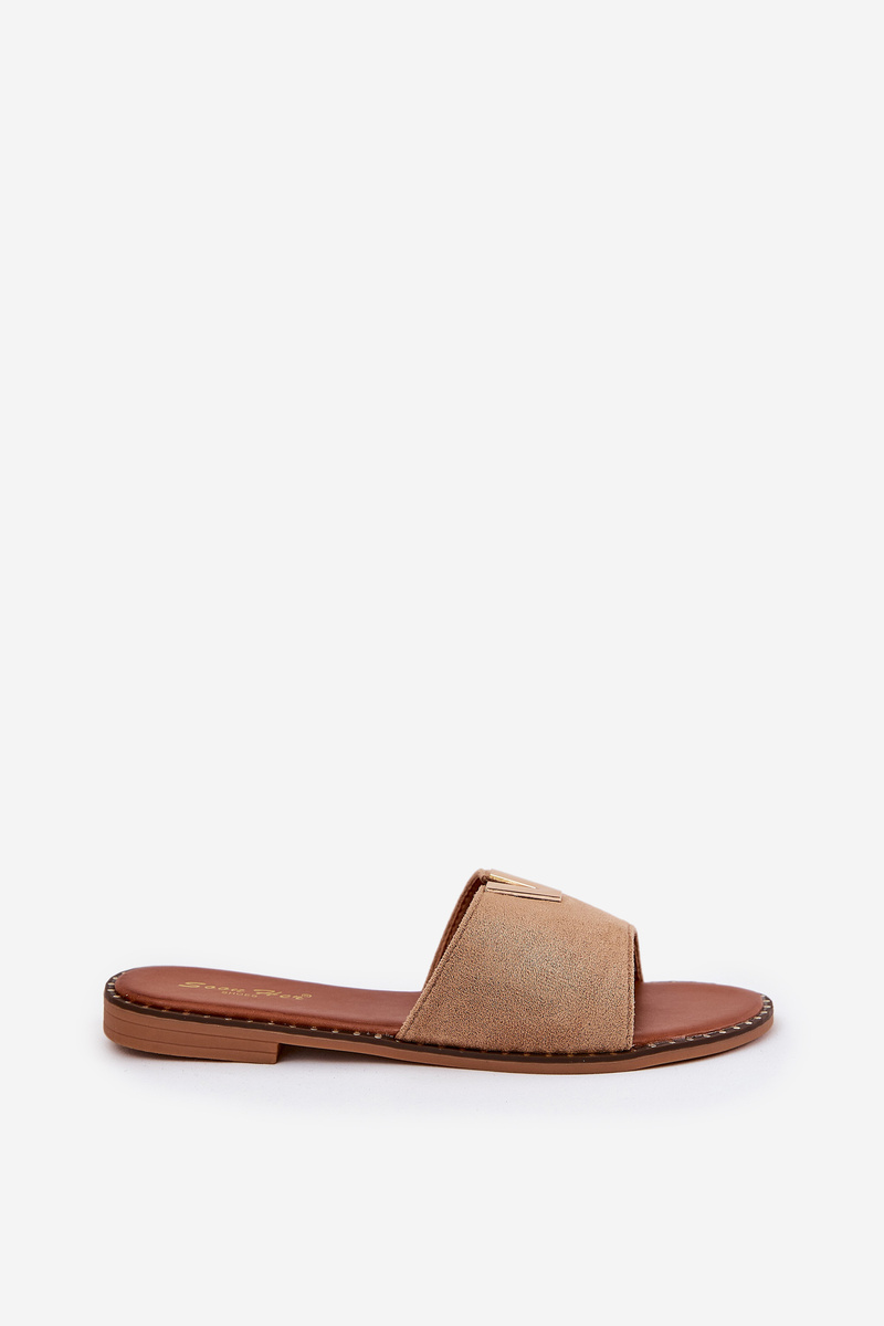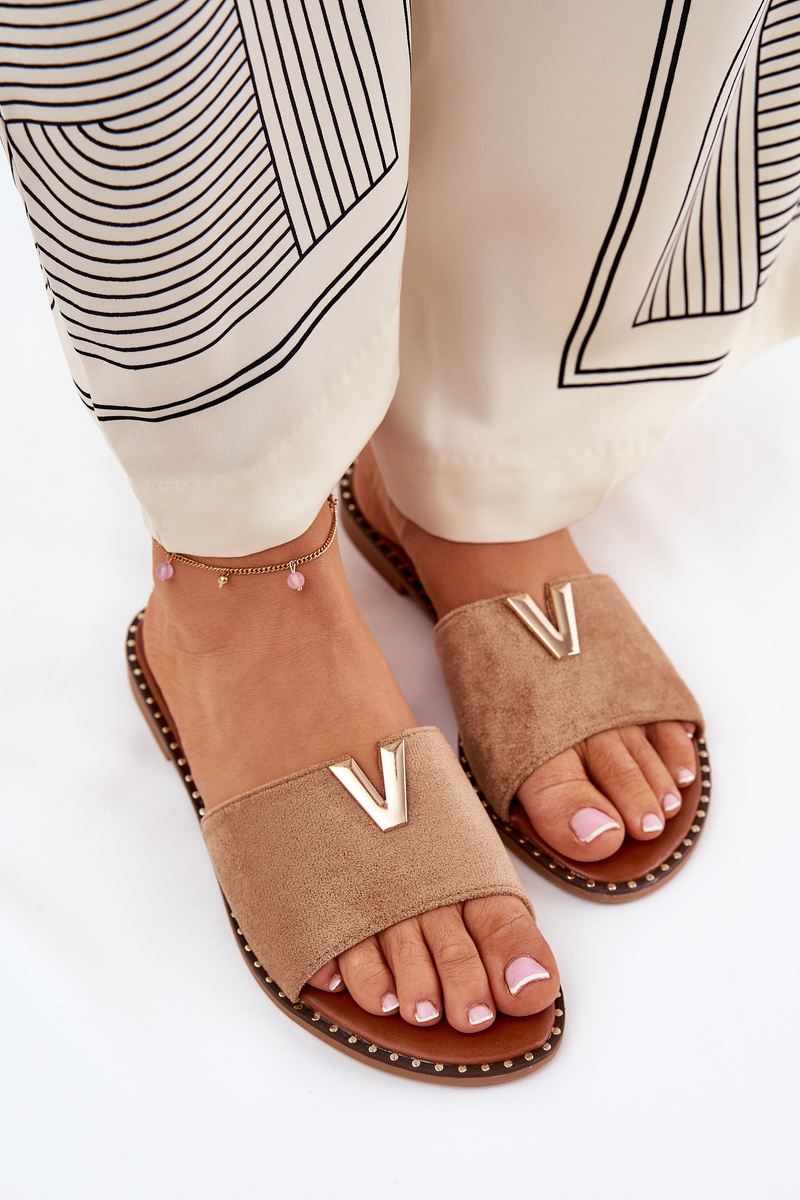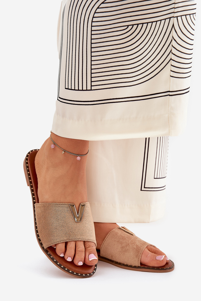 Klapki Damskie Na Płaskim Obcasie Z Ozdobnymi Detalami Khaki Saliena