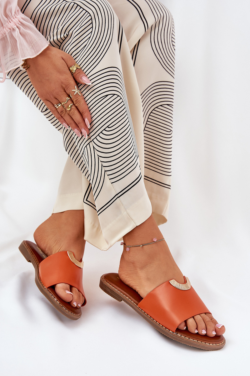 Klapki Damskie Eko Skórzane Z Ozdobnymi Detalami Pomarańczowe Mevith