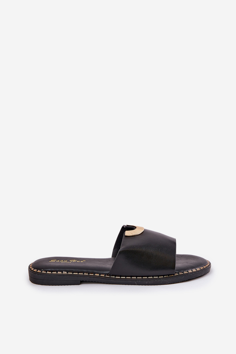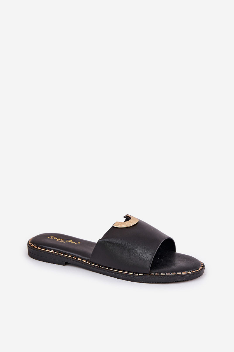 Klapki Damskie Eko Skórzane Z Ozdobnymi Detalami Czarne Mevith